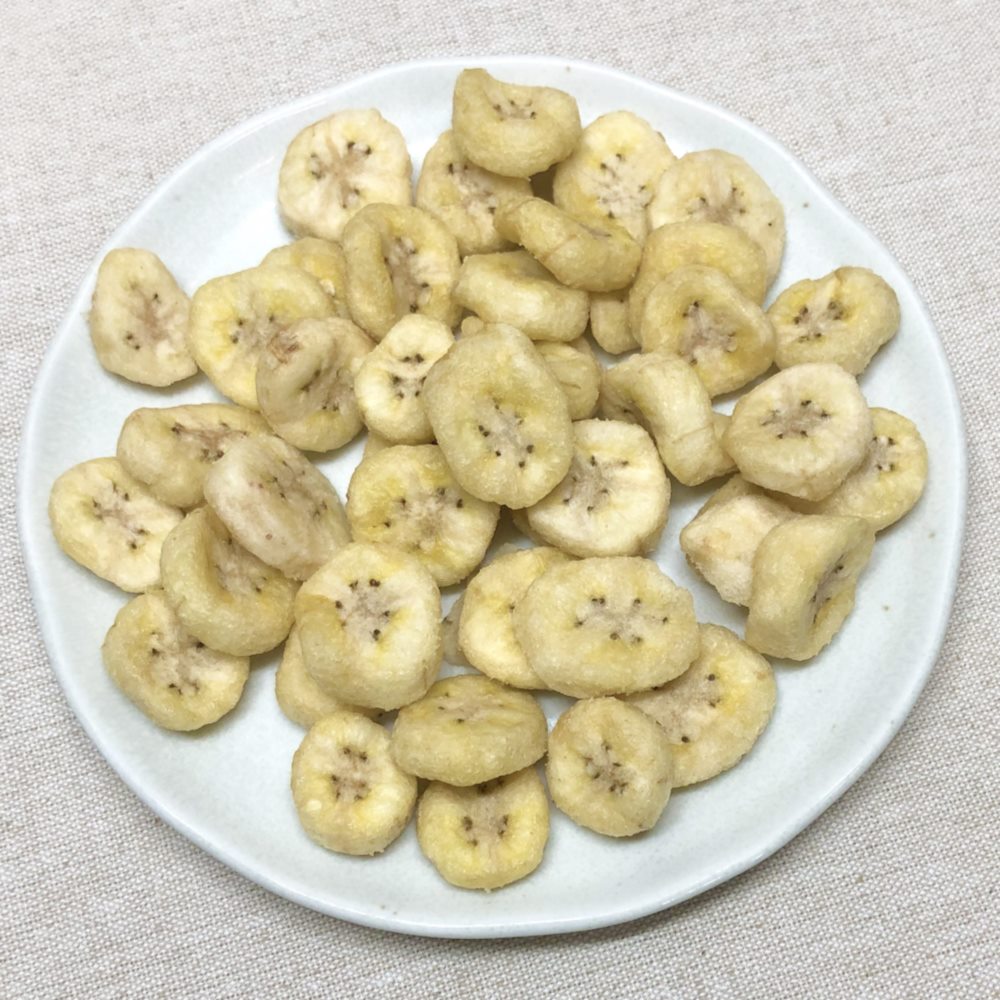【盛り付け例】バナナの味を感じて頂ける「バナナチップス」小腹が空いた時にちょっとした腹ごしらえにどうぞ。