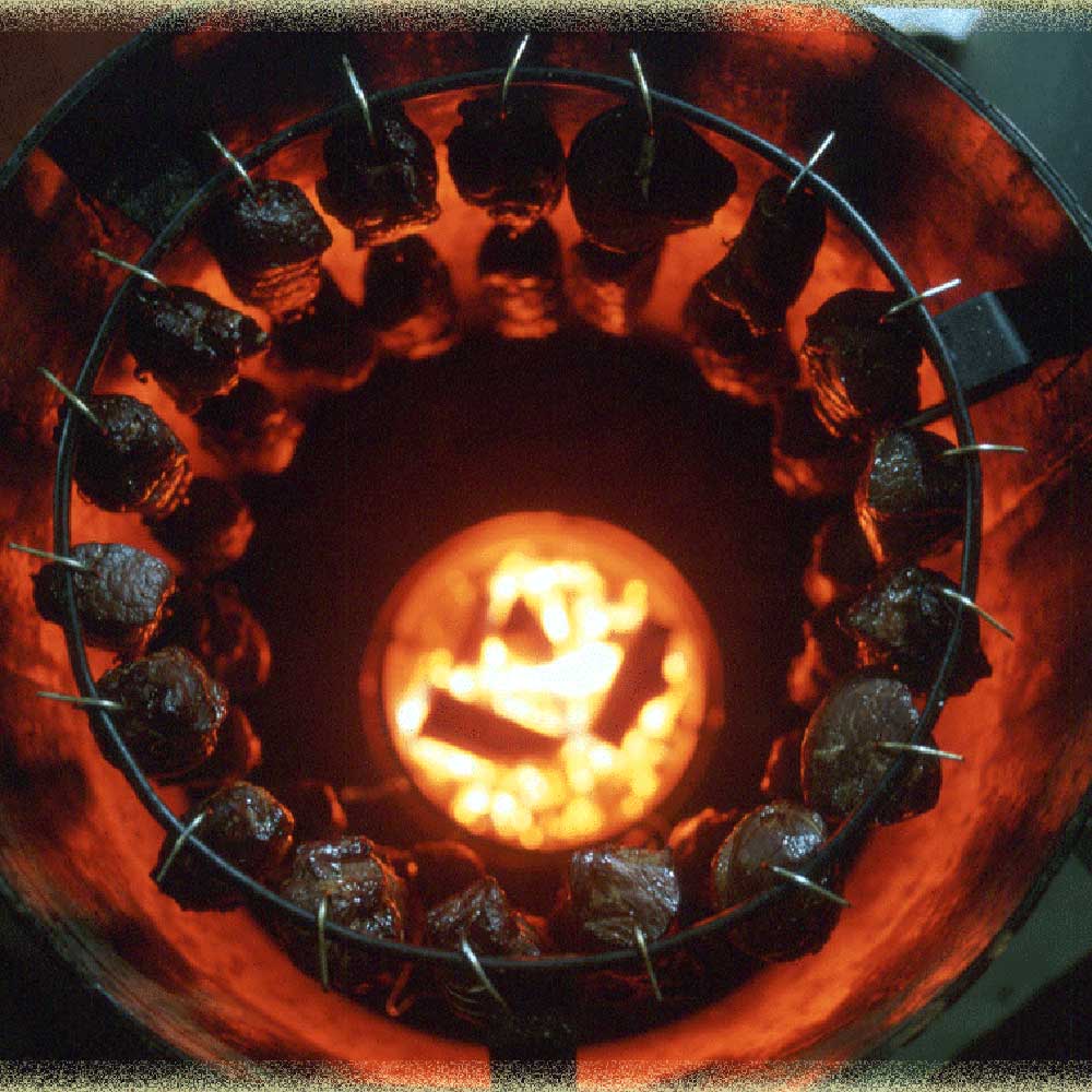 【盛り付け例・調理例】味の決め手は、鹿児島の醤油を使った自家製タレ。黒豚の旨みを引き出すよう丁寧に漬け込み、一本一本手作業で糸を巻いて形を整え、炭火窯でじっくり焼き上げました。