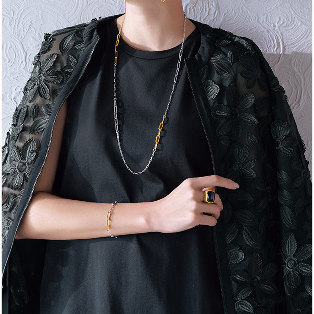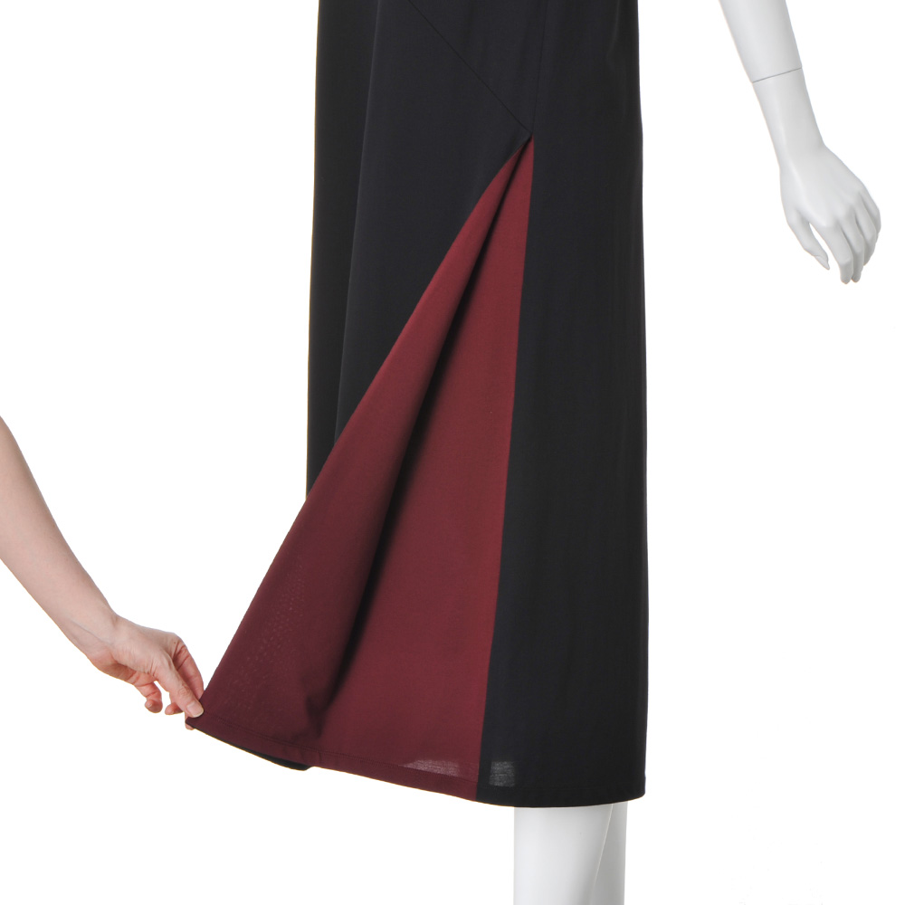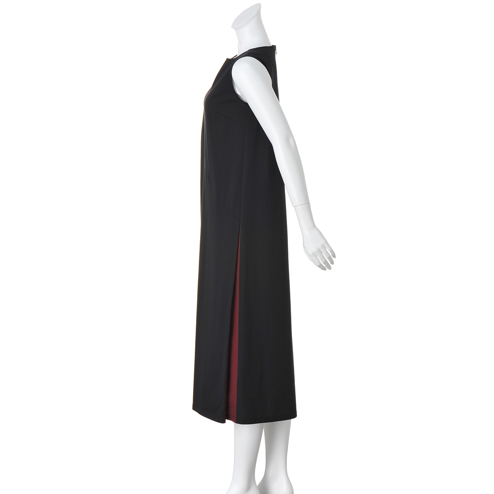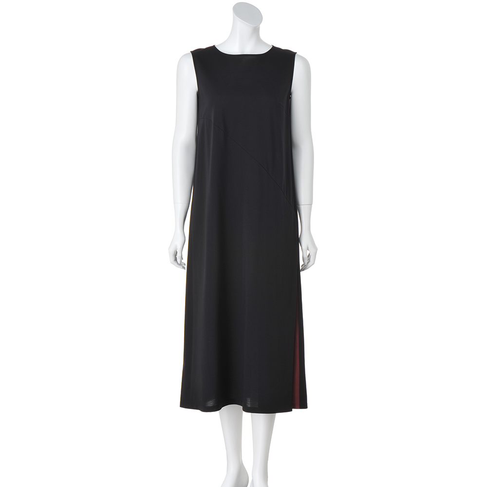 JERSEY世界のメゾンも愛する 表現力の可能性を拓く 和歌山の革新的ジャージー。一枚でリッチに映えるサマーワンピース「本当は布帛なのでは?」と疑うほどツヤ・ハリ感があり、高密度な表面感もシャツ地のよう。希少な36ゲージが編めるジャカード機を使い、「カネマサ莫大小(株)」別注の上質な細番手コットン糸と超強撚ポリエステル糸を交編し、風合い良く仕上げた同社自慢のジャージー素材“アクアツイストタイプライター”です。アイテムは肌離れが良くサラリと着られるAラインワンピース。ワンピースのデザインポイントは左脇の配色ひだ。歩くたびにひだ内側のボルドーが現れ、見る人をハッとさせます。