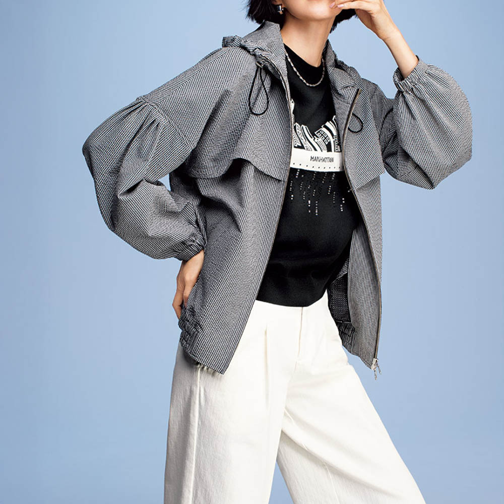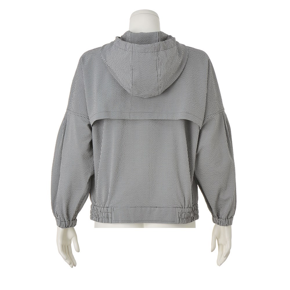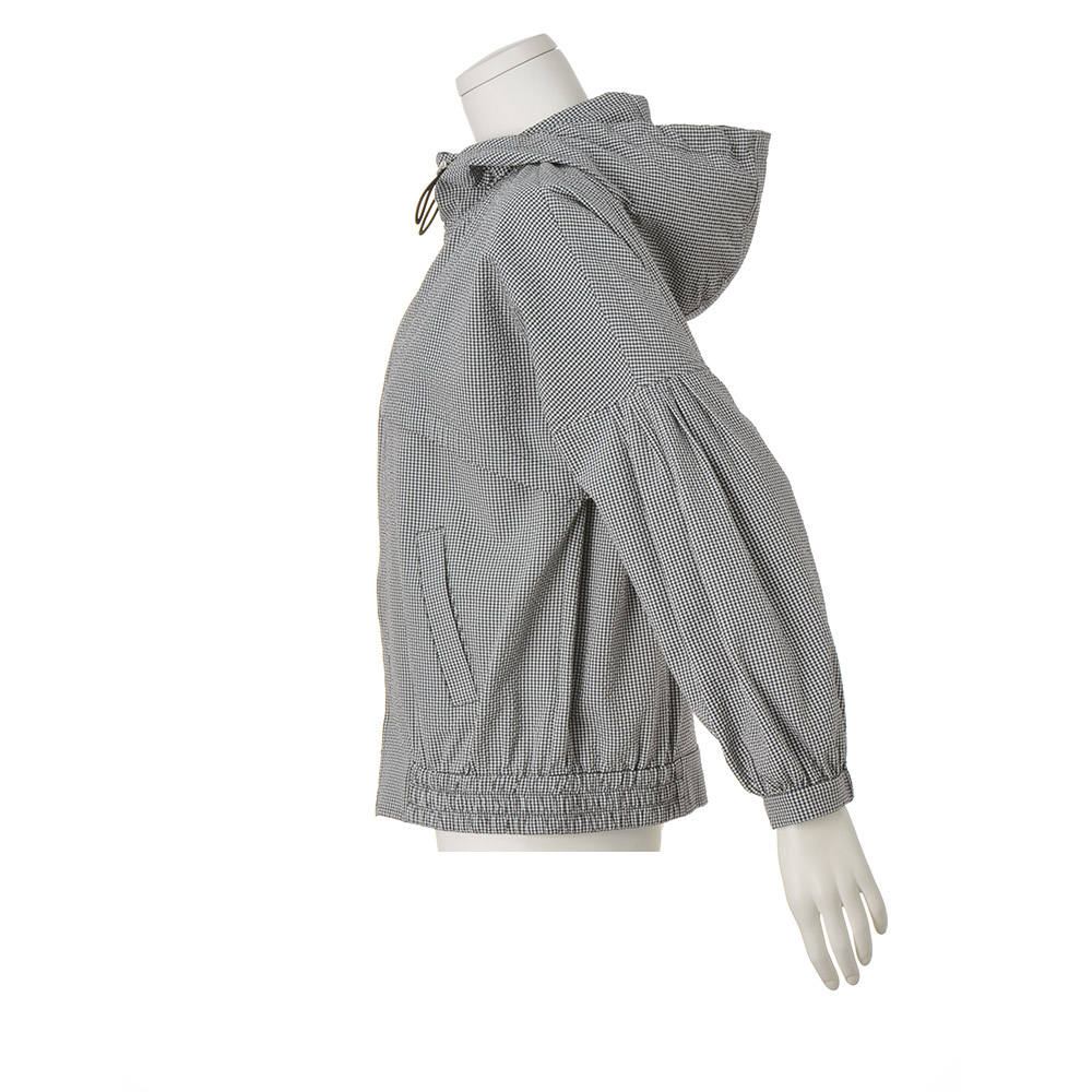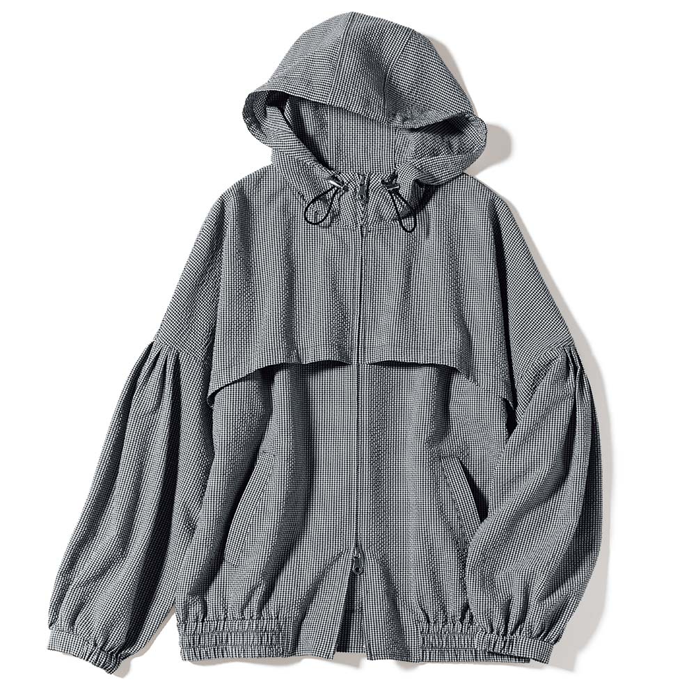 身体を泳がせるシルエットと肌離れの良い素材で涼を羽織る爽やかさに拘り抜いたフーデッドブルゾン。細かいチェック柄に凹凸が広がる生地は、肌に触れる面積が少なく、サラッとドライタッチなリップル素材。フロントはバランス良く開閉できるダブルファスナー仕様。≫ POINTドロップショルダーにギャザー、袖口と裾にゴムをあしらいふんわりと。前後の浮かしヨーク内側の身生地はメッシュ素材にすることで、風通しよく涼やかに。