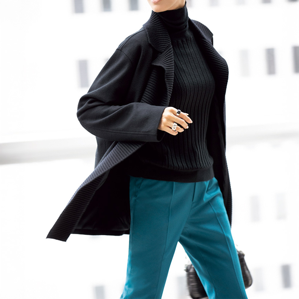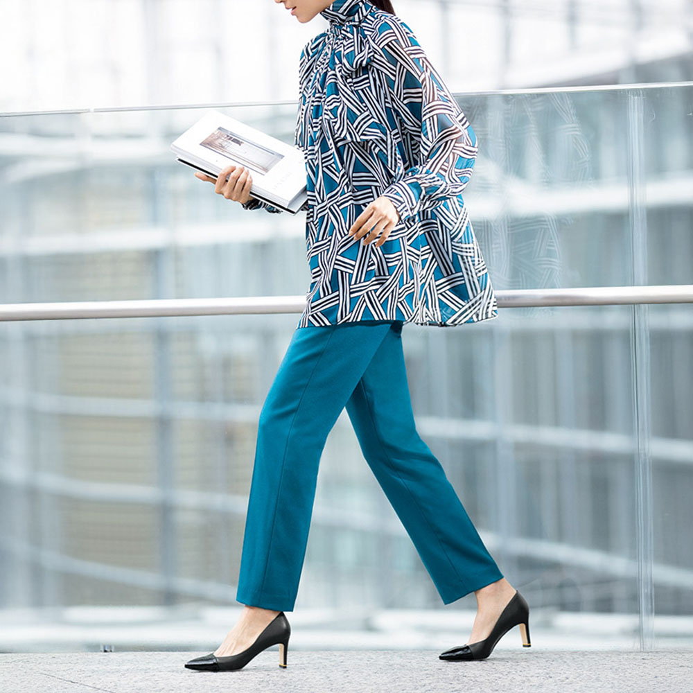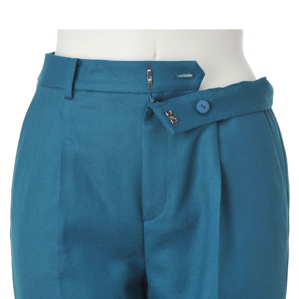 ふと目で追ってしまう印象に残る女性生地は、尾州の老舗毛織物メーカー「西川毛織(株)」の定番ウールサキソニー。シルエットは細身のテーパード、腰周りに程良いゆとりを生むワンタックからつなげたセンタープレスが端正なルックと美脚効果を発揮します。POINT深めの股上とカーブベルトで安定感のあるはき心地。