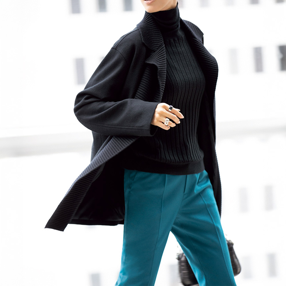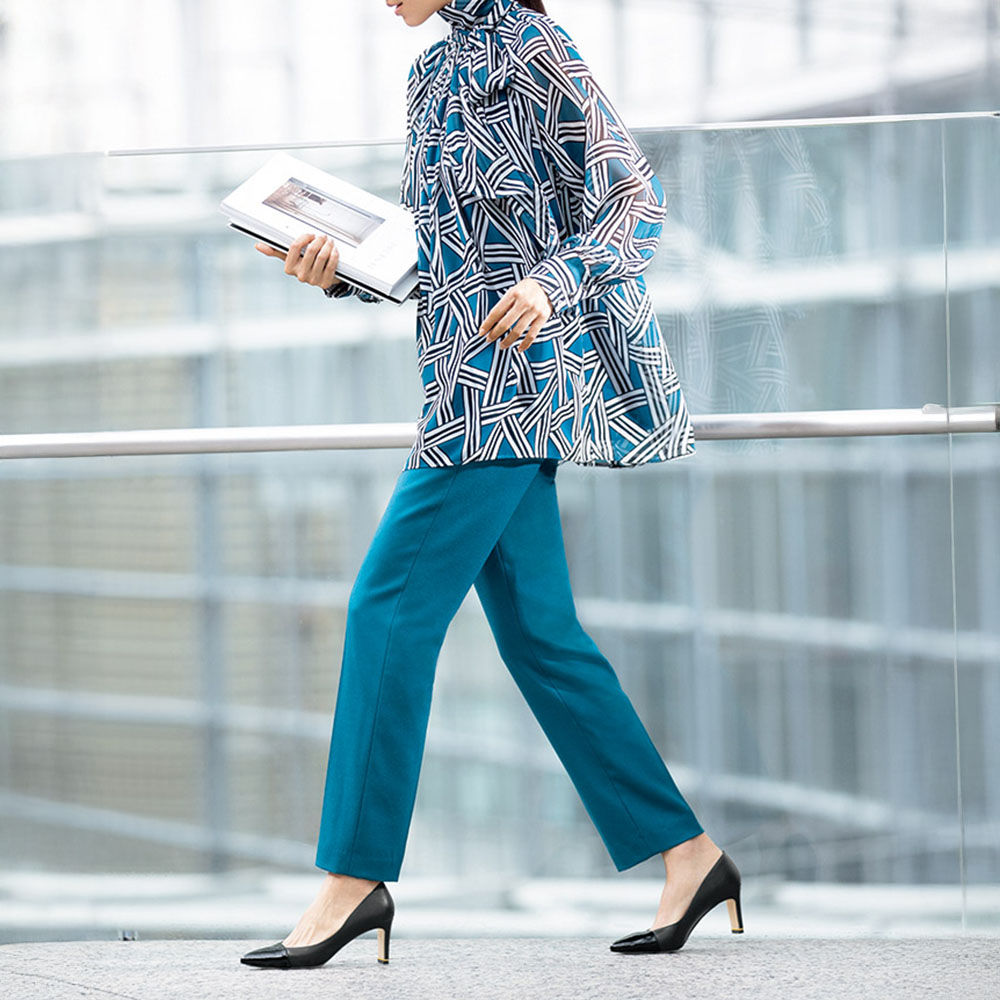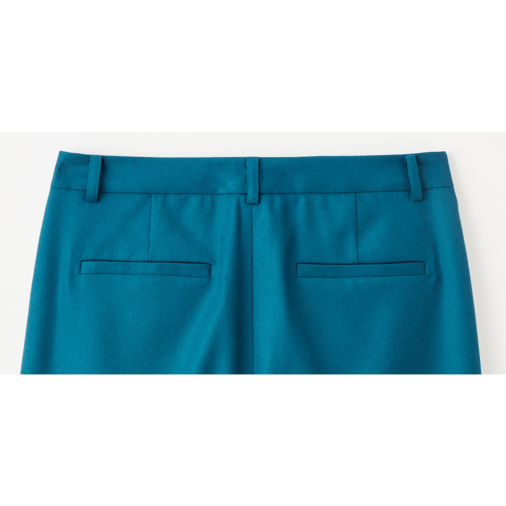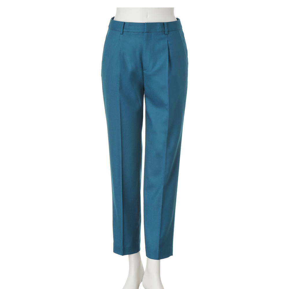 ふと目で追ってしまう印象に残る女性生地は、尾州の老舗毛織物メーカー「西川毛織(株)」の定番ウールサキソニー。シルエットは細身のテーパード、腰周りに程良いゆとりを生むワンタックからつなげたセンタープレスが端正なルックと美脚効果を発揮します。POINT深めの股上とカーブベルトで安定感のあるはき心地。