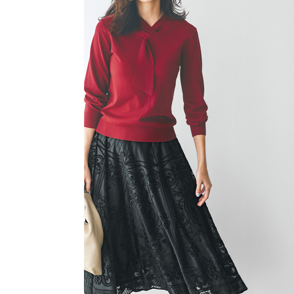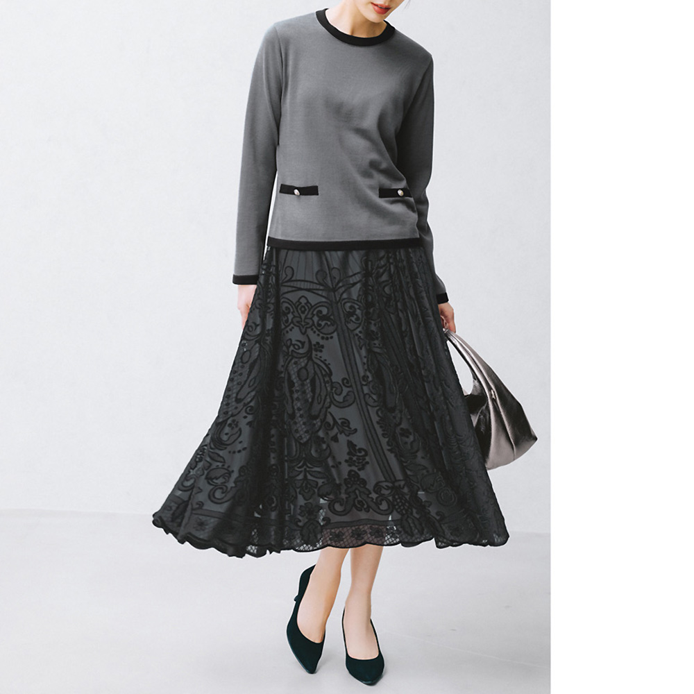 コーディネート例 /上品ニット×クラシカルなスカートで魅せるレディなモノトーン