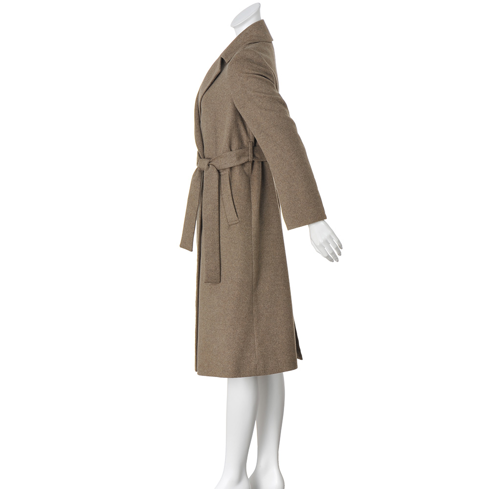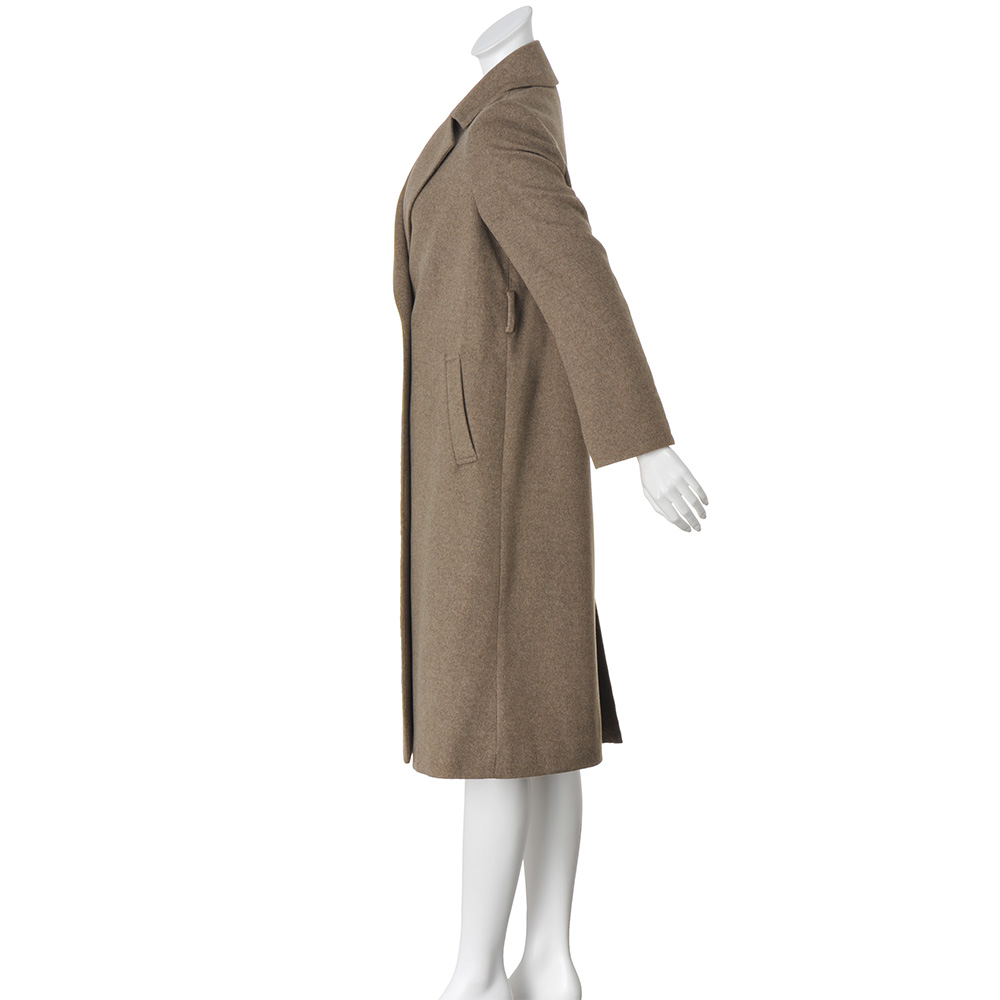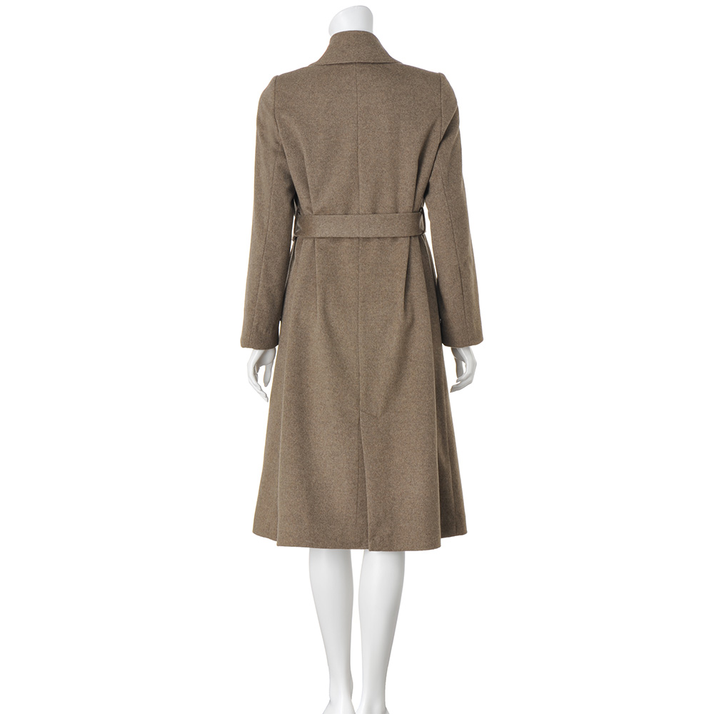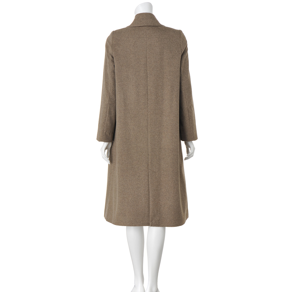 素材はなんと、カシミヤ100%!トレンドを超えて長く愛せる、オーセンティックなチェスターコートです厳選したのは高品質なのにお値打ちな特別感のあるコート。ご紹介するのはカシミヤを贅沢に使用したコートです。高い技術と実績のある工場の協力のもと、特殊加工を施し丁寧に仕上げを行うことでカシミヤならではの美しさを引き出した生地は、上品な艶感、なめらかな肌触り、暖かな空気に包まれているような軽い着心地です。デザインはトレンドを超えて大人の女性に長く愛していただけるようテーラードカラーのロング丈に。顔周りをシャープに見せてくれる端正な襟開きに、セットインの肩から裾へしなやかに流れるIラインはそのままでも美しく、共生地ベルトでウエストマークすれば女性らしいメリハリも。ウエスト位置には高級感あふれる本水牛製のダブルボタンを配して細部にも拘った一着をお届けします。