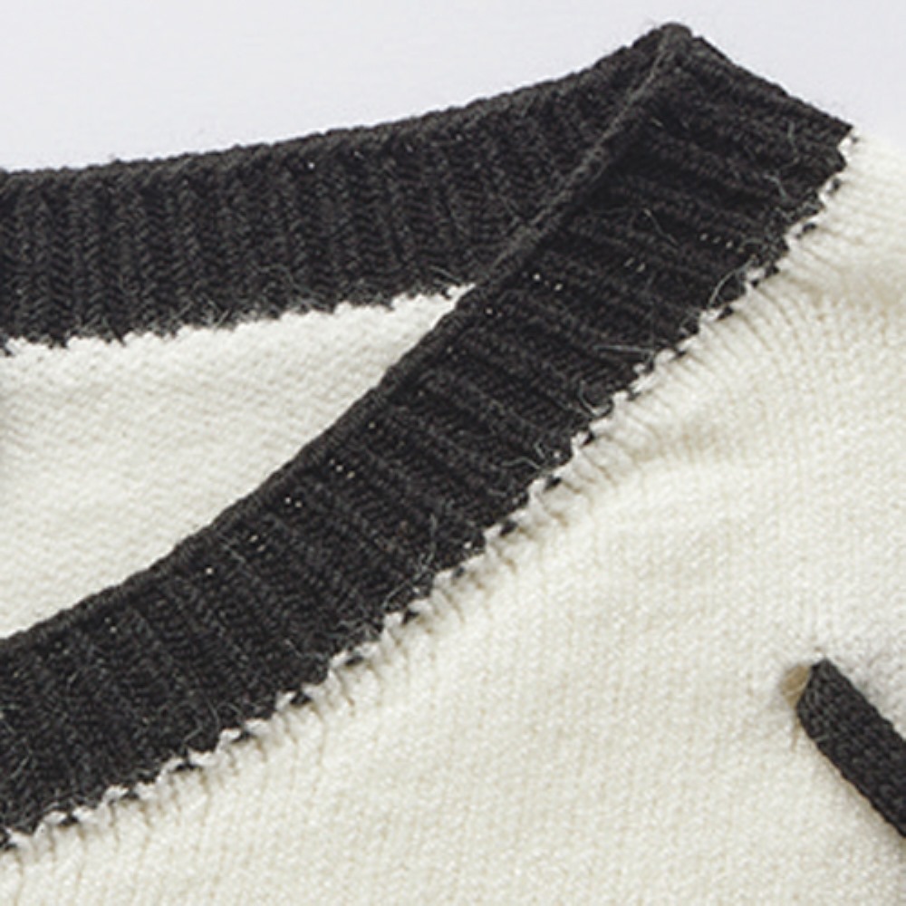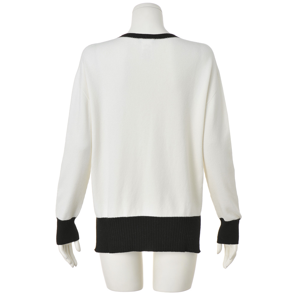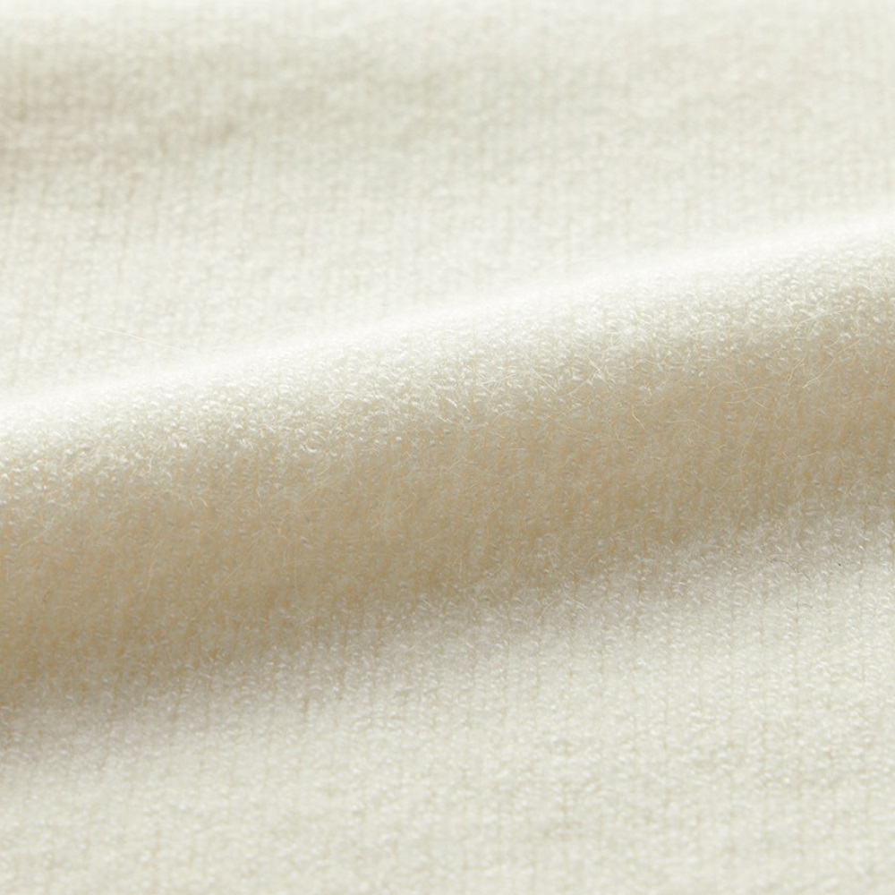 襟ぐりのステッチのような編み地もさりげなく主張し、細部までこだわりを。