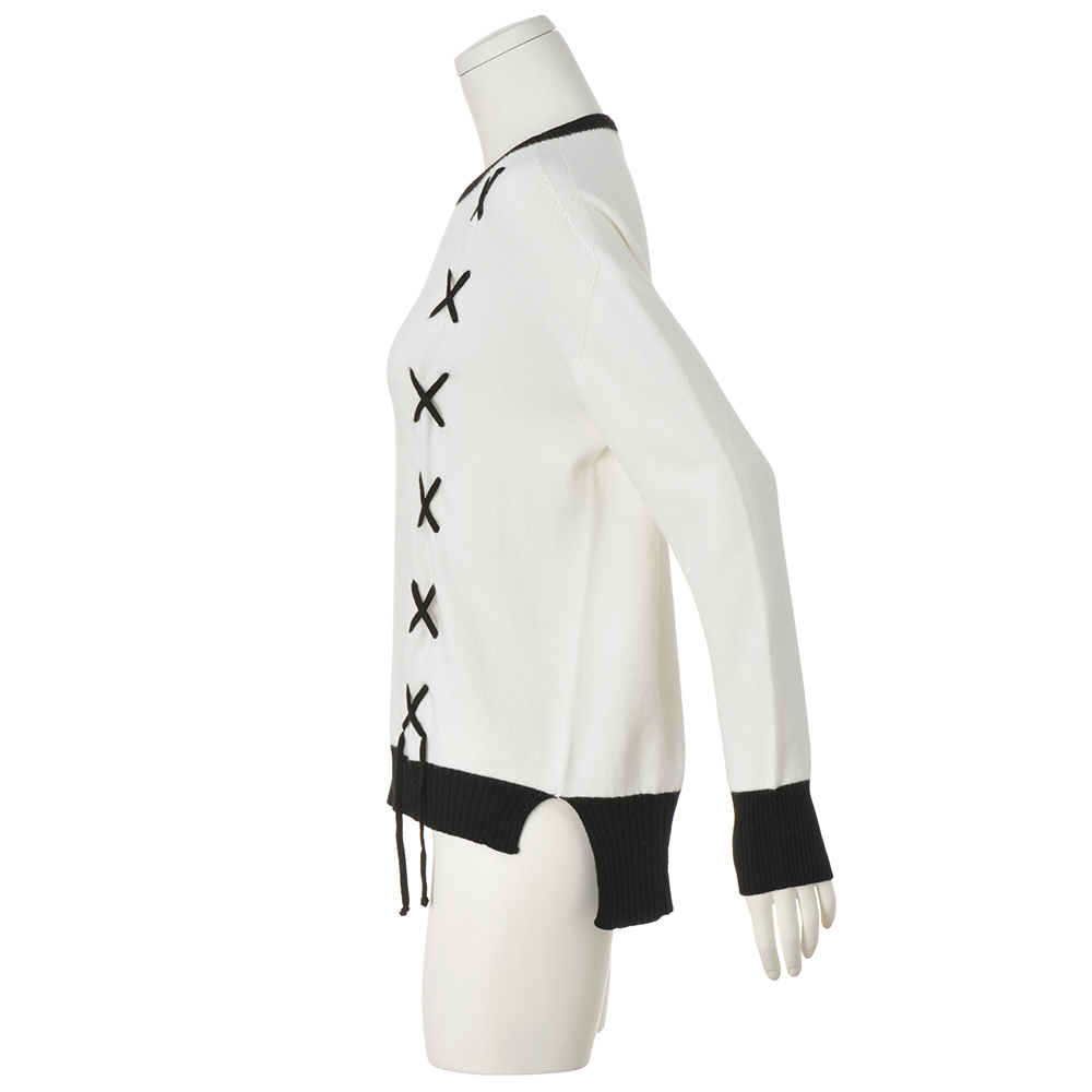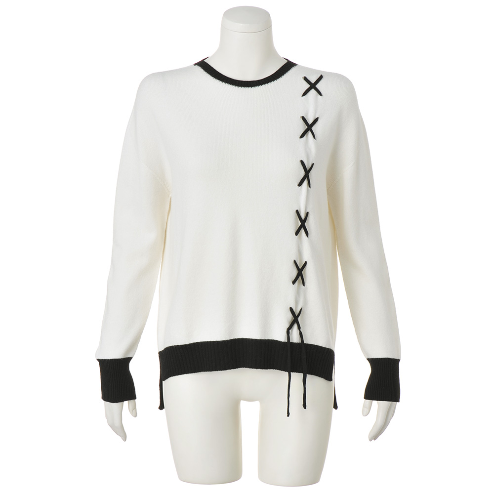 シームレスで編み立て接ぎがなく、肌あたりのいいニットプルオーバー。もっちりとした質感のある素材や編み上げデザインの遊び心など、イタリアらしいエッセンスが満載です。前後差のある丈感で、ヒップまわりもさりげなくカバーします。BLUE ICE - ブルーアイス -ファミリーが営む、イタリア生まれのニットウェアブランド。凝った編み柄を得意とし、高いデザイン性も人気です。