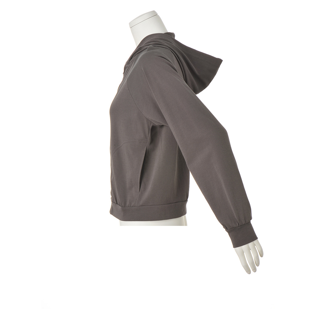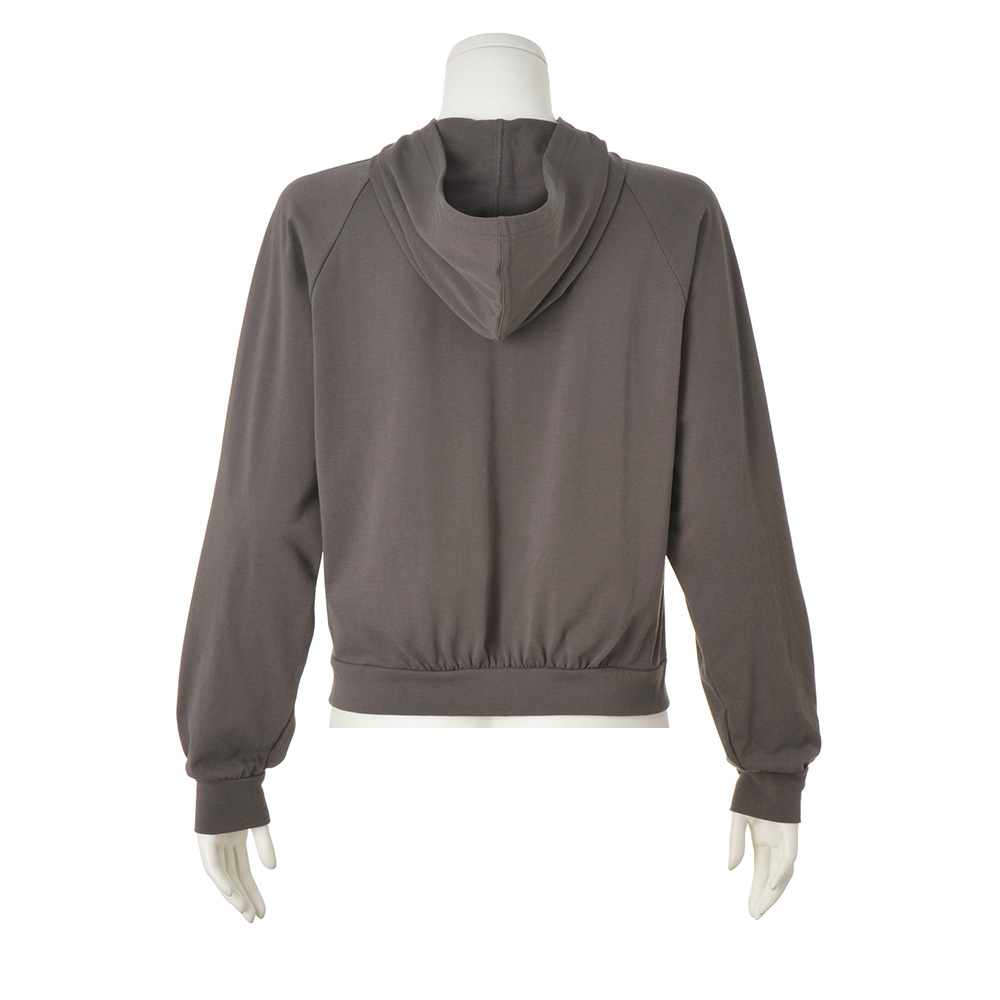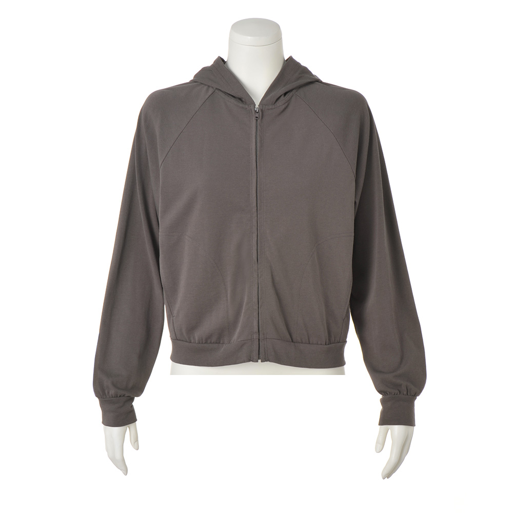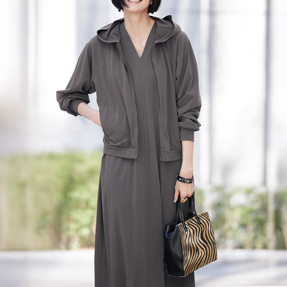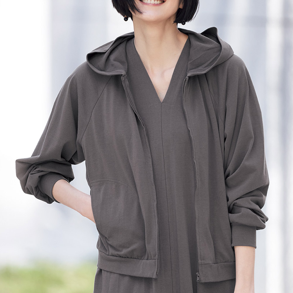 JERSEY世界のメゾンも愛する 表現力の可能性を拓く 和歌山の革新的ジャージーパーカを重ねて、スポーティーな着こなしに。ラグランスリーブと、やや短めに設定した着丈でスタイルアップに。袖口と裾には切り替えとギャザーで、ほんのり甘さをプラスしています。暑さが残る時季も羽織りやすいよう、フードは一枚仕様、ファスナーは軽めのタイプを選びました。ジャージーだからできる!着回せる!!スライドコーデ【A-GIRL’S】FRESCA40オリジナル強撚コットン糸「FRESCA(フレスカ)」の40番手を使用。シャリ感と柔らかさが共存する程良い風合い。