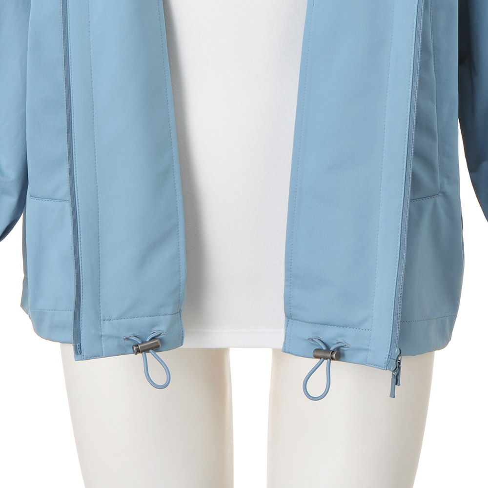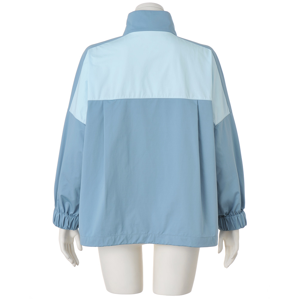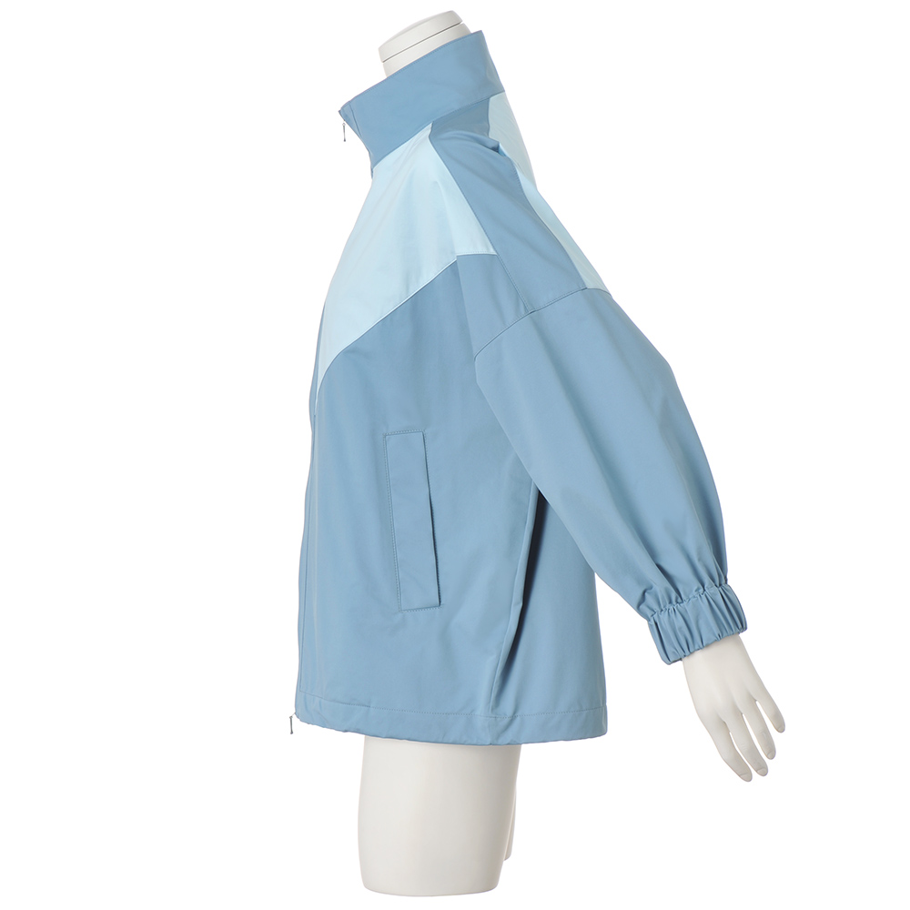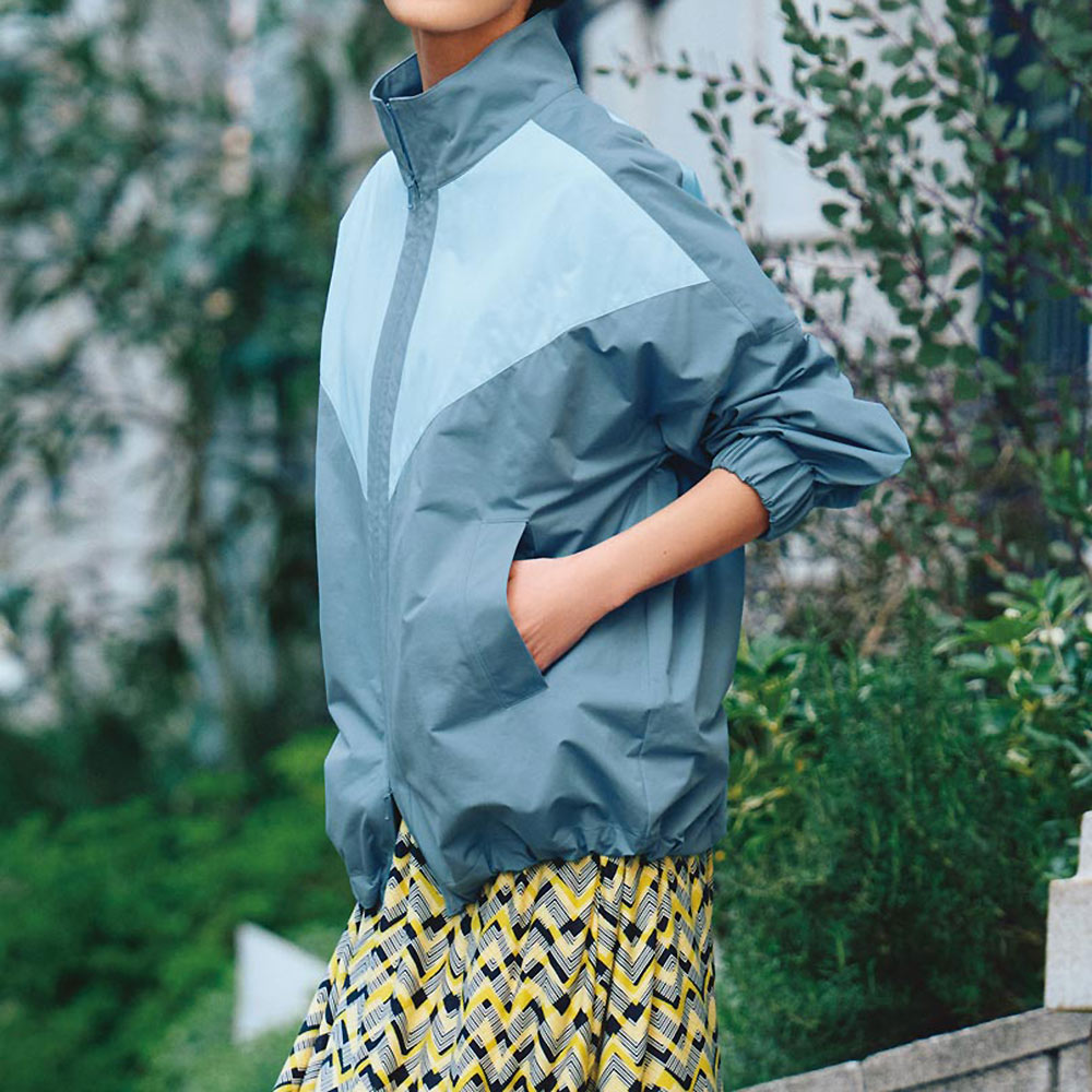 これぞスポーティ×フェミニンのお手本!人気のトラックジャケットを、ストレッチ性とはっ水性を持つ、布帛のような軽量素材で仕立てました。前身頃のVカットと後ろのヨーク部分を配色で切り替えつつ、同系色の優しげなカラートーンで女性らしさを加味。裾には調節可能なゴムコード入り、前開きは便利なダブルファスナー仕様。