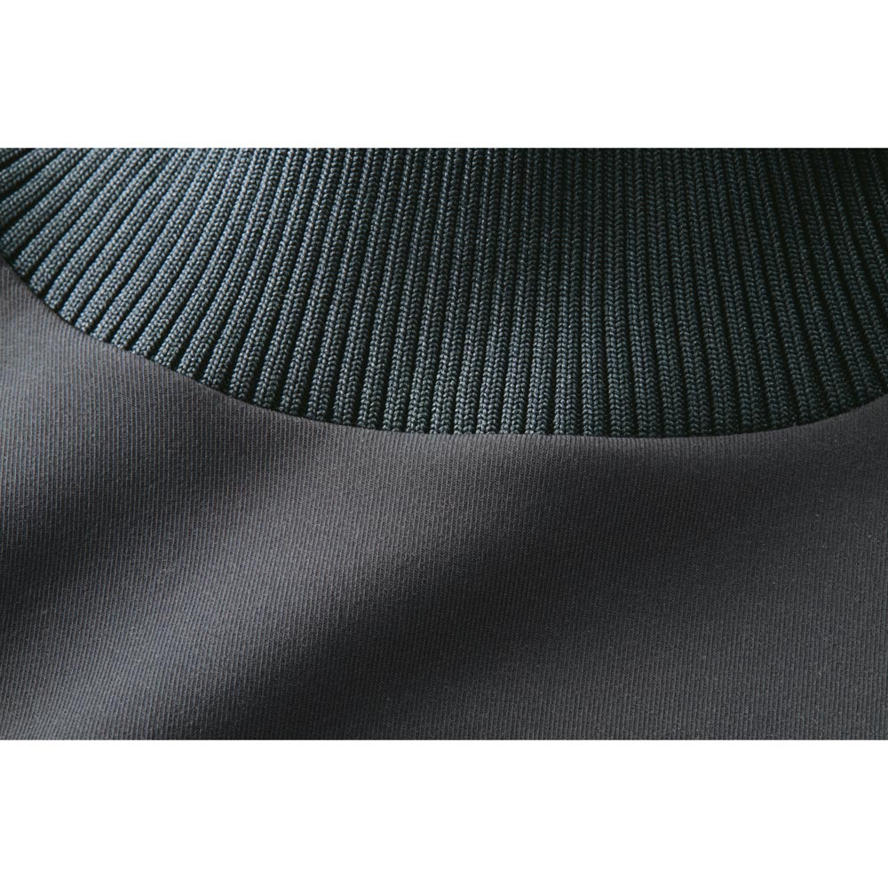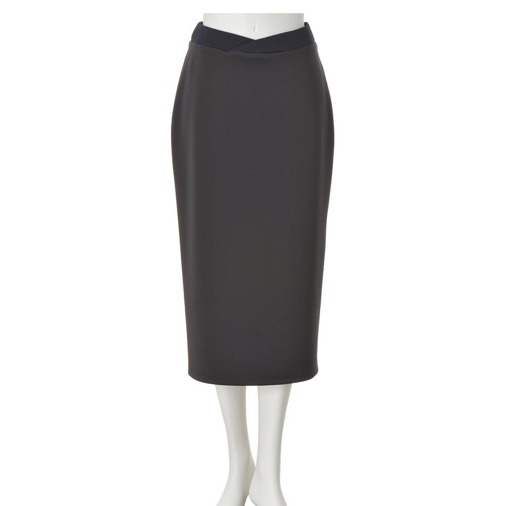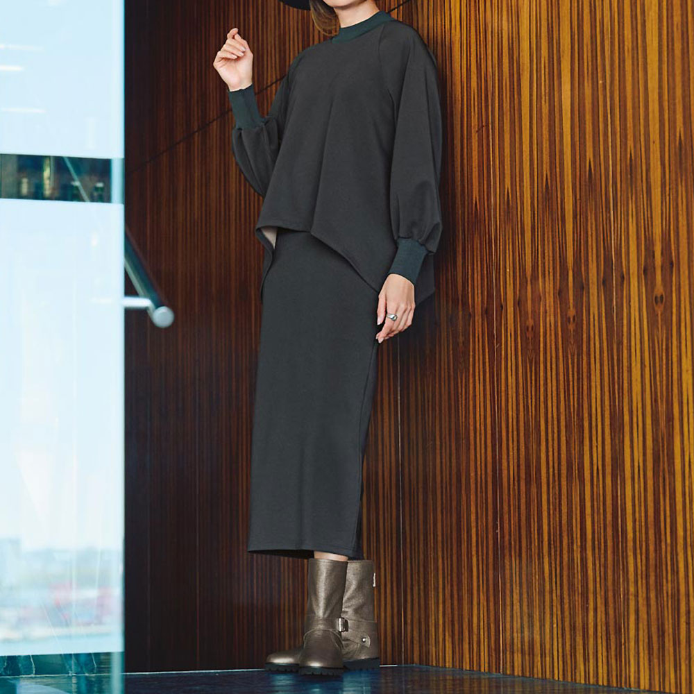 大人の日々に、着映えするデイリーシックを数多の生地の中から厳選したのは、きちんと見えてリラクシーな“着映え素材”。快適性を基本に気負わないお洒落を進化させます。スタイルアップも叶える聡明なアイテムをご覧ください。艶グレーのジャージーで、リュクスなモード感を表現トレンドコンシャスなディテールの、モード感薫るアイテムはいかがでしょう。特殊加工糸で編んだジャージー素材は、艶やかなグレーの色味とぷるんとソフトな肌触りがスタイリッシュ。リブは目の立った編み地で“脱カジュアル”に仕立てました。キックバックのよい素材なので、スカートはあえてベントなしのタイトシルエットですっきりと。ウエストの変形リブが、着こなしの洒落たワンポイントに。