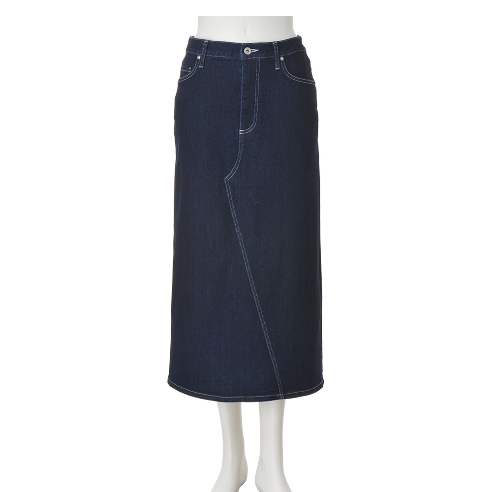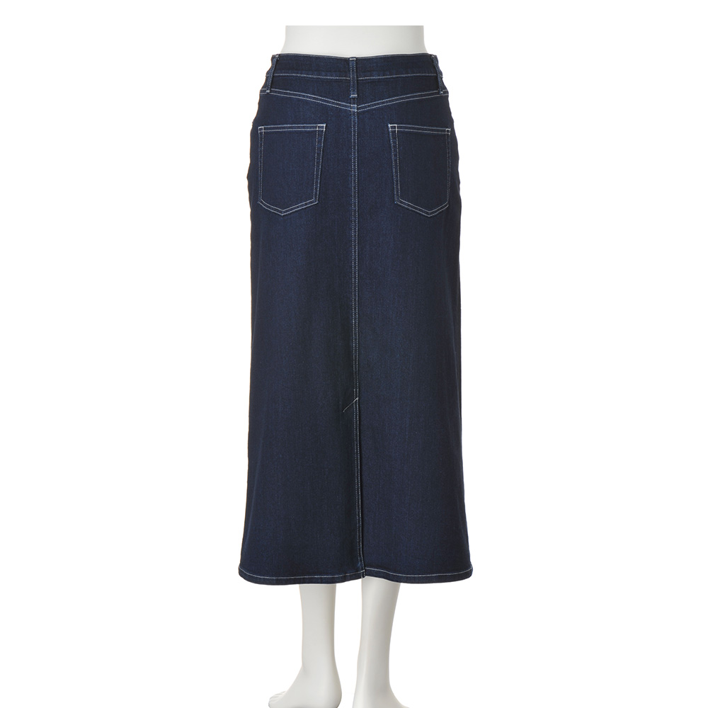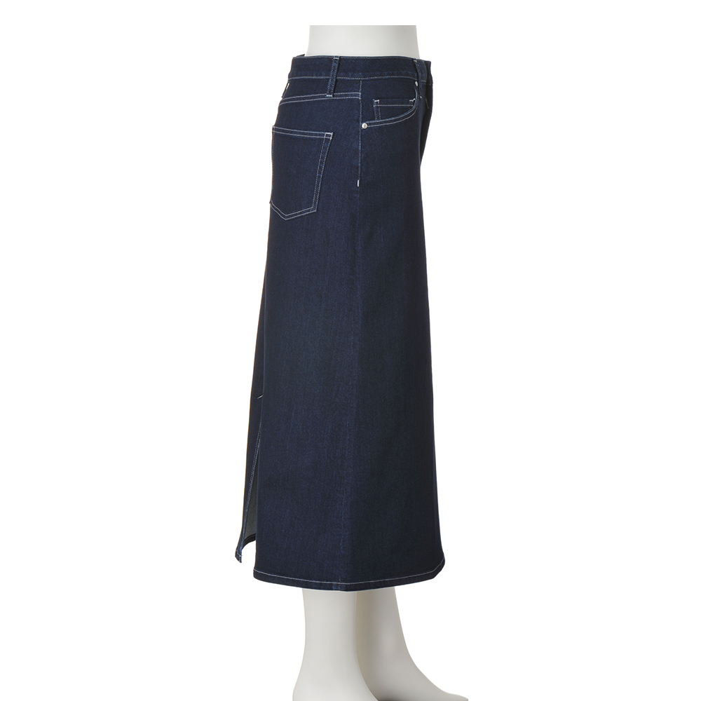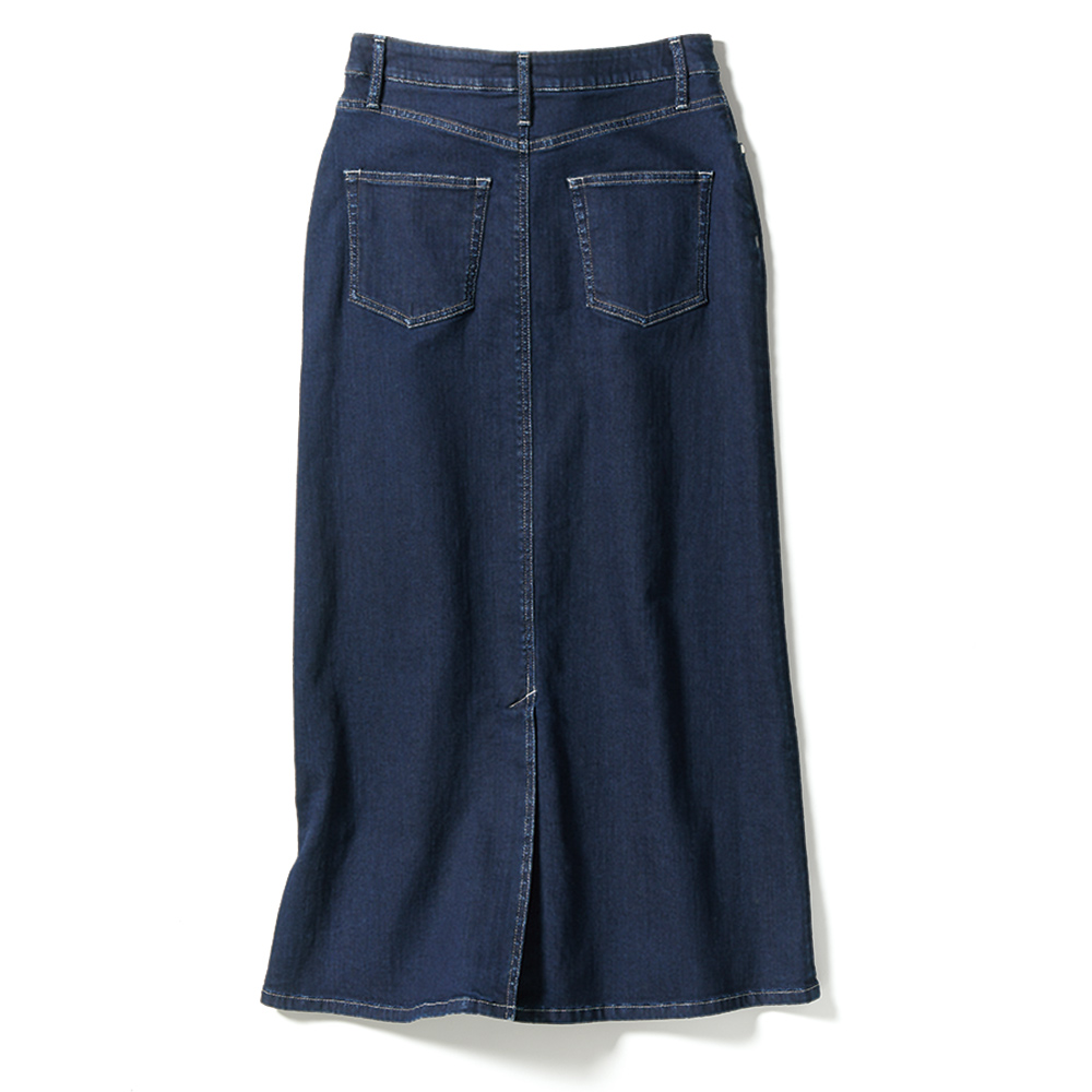 ベーシックにワザを加え新しい表情を作り出す控えめな色落ちできれいめに仕上げたデニム生地のスカート。実は裏面に起毛加工が施された「カイハラ(株)」製。パウダータッチで肌に触れたときにヒヤッとしません。ロング丈なので後ろ裾にベントを入れて足さばき良く。≫ POINTデザインはリメイク風。5ポケット仕様、後ろはヨーク切り替えとポケットでヒップを高く。