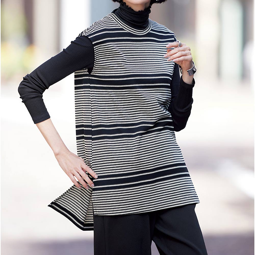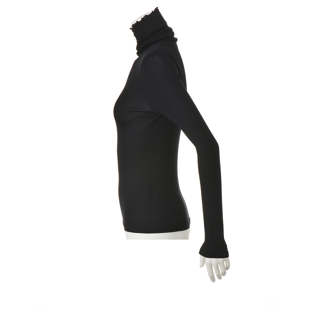 世界のメゾンも愛する、表現力の可能性を拓く和歌山の革新的ジャージー「(株)森下メリヤス工場」からシンプルなタートルプルオーバーをご紹介します。素材は贅沢な肌触りを堪能できるウォッシャブルシルクで、表は身体にフィットし過ぎない針抜きリブ、裏はさらりとした肌触りのフライスに編まれているのも大人好み。襟端のメロー始末が顔周りにフェミニンなニュアンスを添えるアクセントになっています。≫ POINT針抜きリブだから身体に程良いフィット感。筒状の丸胴編みで脇接ぎがないのが着心地の決め手。