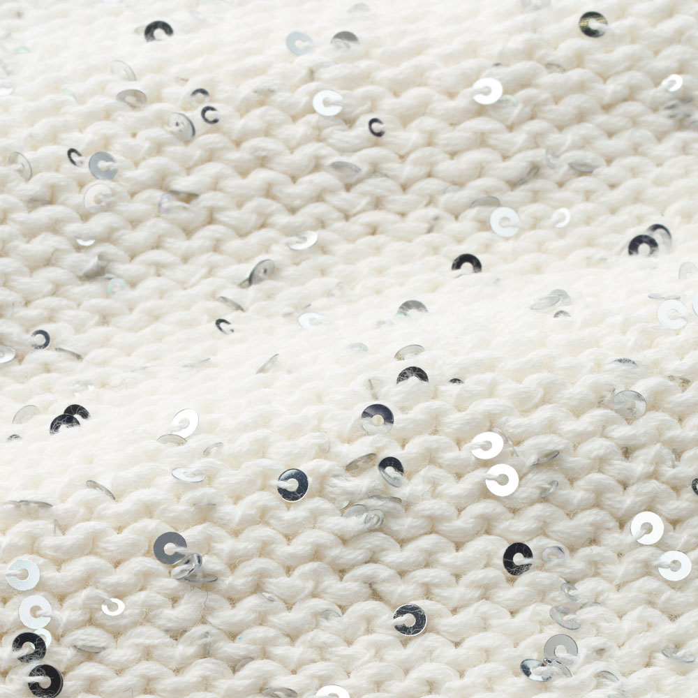 コットン糸にスパンコールヤーンを撚り合わせた別注糸を使用。上品なシルバースパンコールを密度高くちりばめました。