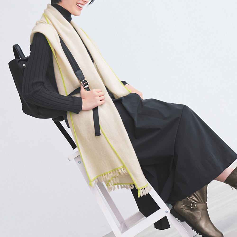 驚くほど柔らか。端のラインとミニフリンジでお洒落さ増し!カシミヤ100%の中太糸を使用したボリューム感で、着こなしの主役を張れる存在感です。仕上げの特殊な縮絨による、柔らかな肌触りは驚かされるほど。四方の端に入ったラインと、手作業で糸を結んでいるチリチリとした小さなフリンジがキュート。人と差がつく「私のカシミヤストール」を手に入れて。