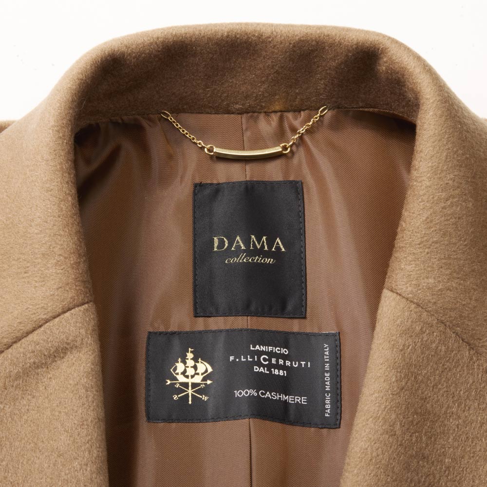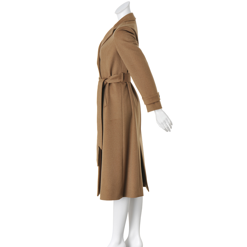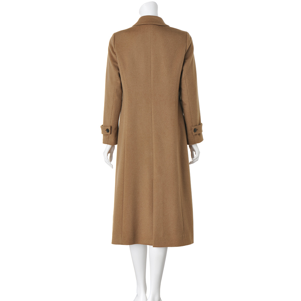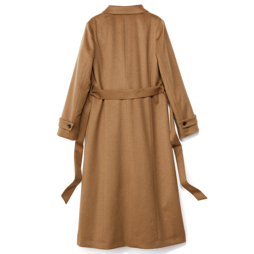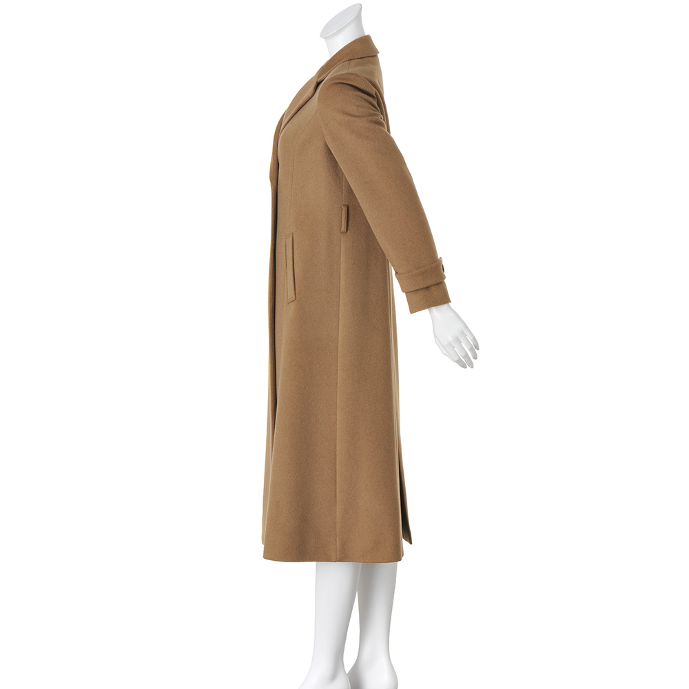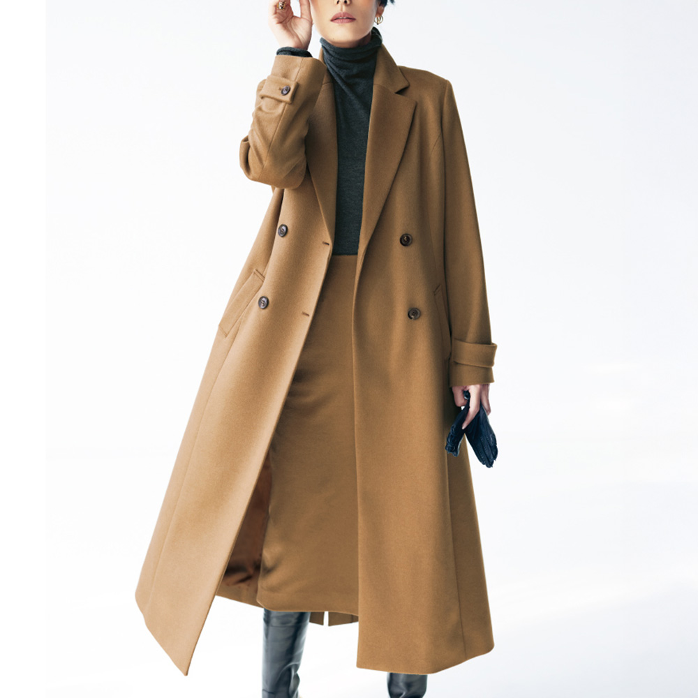 ミニマルな洗練美が着る人の個性を映す確かな品格を感じさせるミニマルなルックを、堂々と着こなすこと。それは、エレガントな大人だけが楽しめる高度なお洒落です。様々なシーンを想定し、纏うだけで胸が高鳴る感動をお届けしたい、と提案するのが、イタリアの名門梳毛メーカー「チェルッティ」社のカシミヤを使ったコートです。内モンゴル産のカシミヤ原毛から繊維が細く長いものだけを厳選し、自社の徹定した品質管理のもと特別な糸で織り上げられた生地。柔らかさ、軽さ、上品な光沢、どれを取り上げても風格の違いを感じさせます。特筆すべきは奥行きのあるメランジ感で表現されたシックなキャメルカラー。アザミの実を使った起毛加工で表現した艶と絶妙に調和し、しなやかで美しいドレープ、えも言われぬ趣を堪能できます。生地の魅力を丁寧に活かすために、仕立ては日本の縫製工場に託して。テーラードカラーとコンパクトな肩、水牛ボタンで留めるダブルブレスト、ゆったりとしたロング丈に。付属の共布リボンベルトでウエストマークすればドレスコート風にも着こなせます。シャンブレーが奥行きを醸す裏地と見返し部分に挟み込んだブレード、ゴールドチェーンの襟吊りなど、素材の品格に相応しい仕立てに。コートをオフした時にも上質さを印象づけてくれます。Message from「CERRUTI(チェルッティ)」Mr.LUIGI「Gigi」PALANDRI 「CERRUTI」Chief Designerご用意したのは、繊細なメランジカラー、しなやかなドレープ、優美な艶感…と豊かな魅力を湛えたカシミヤ100%のテキスタイル。時間も手間もかけたからこそのラグジュアリー感です。