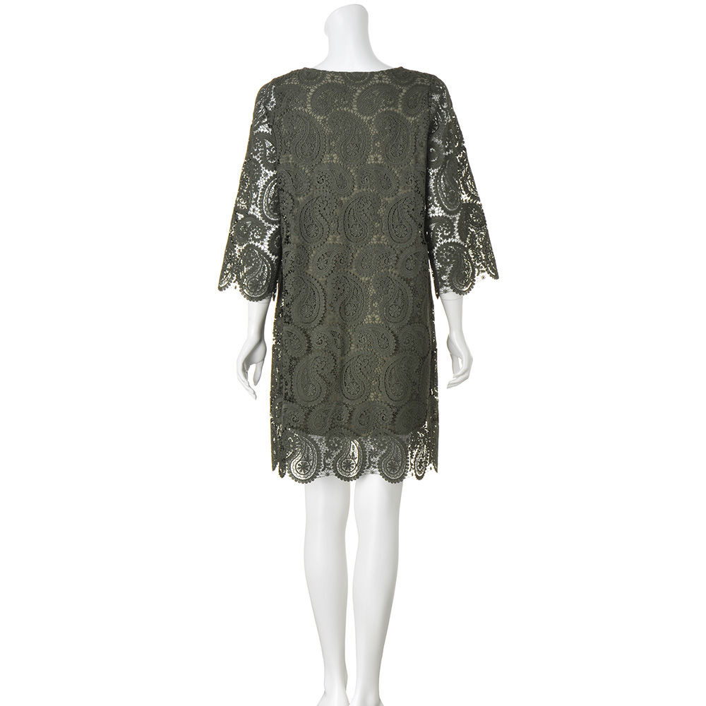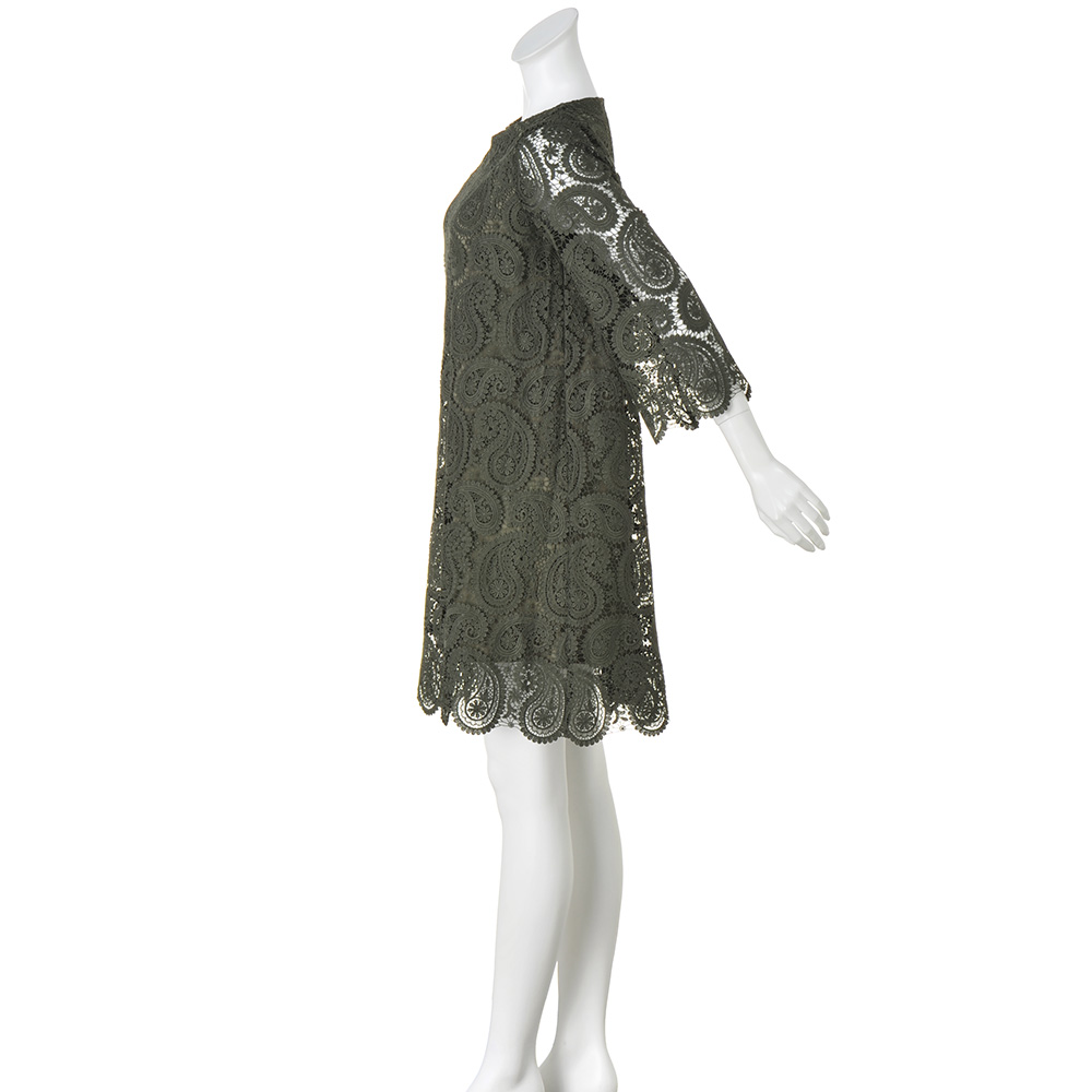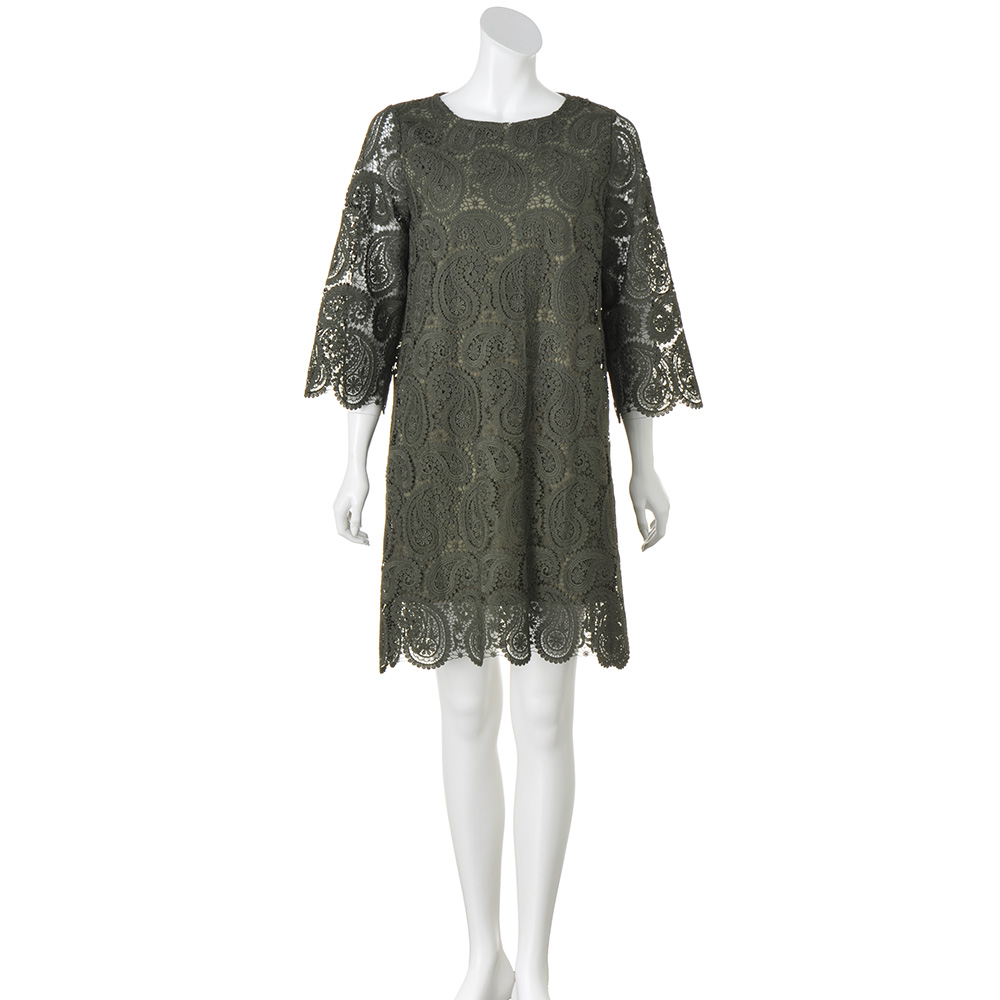 コーディネート例 /例落ち着いたカーキ色と、ペイズリーのレースが大人に似合う。身頃のみ裏地つき。