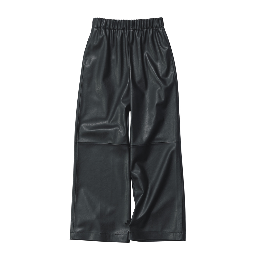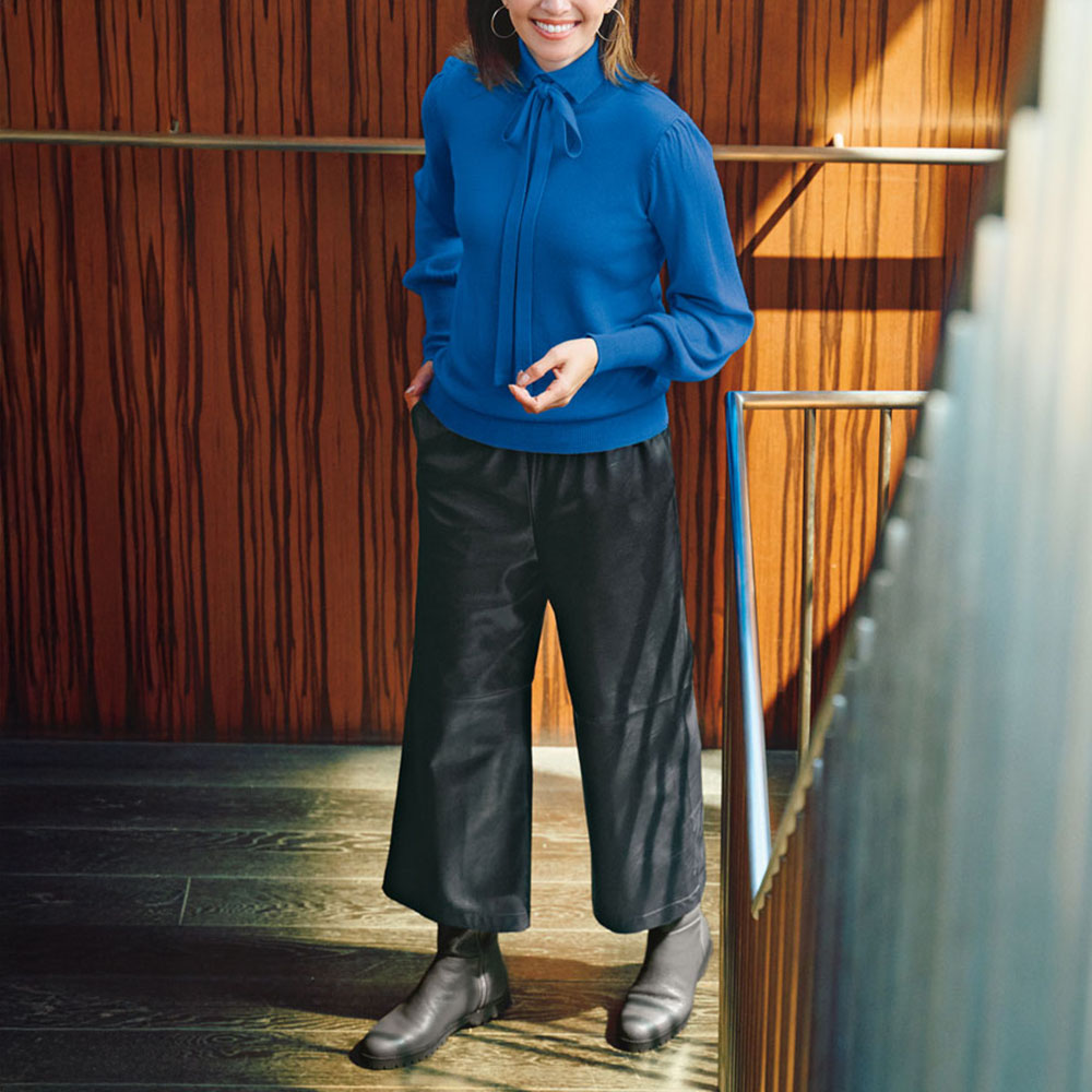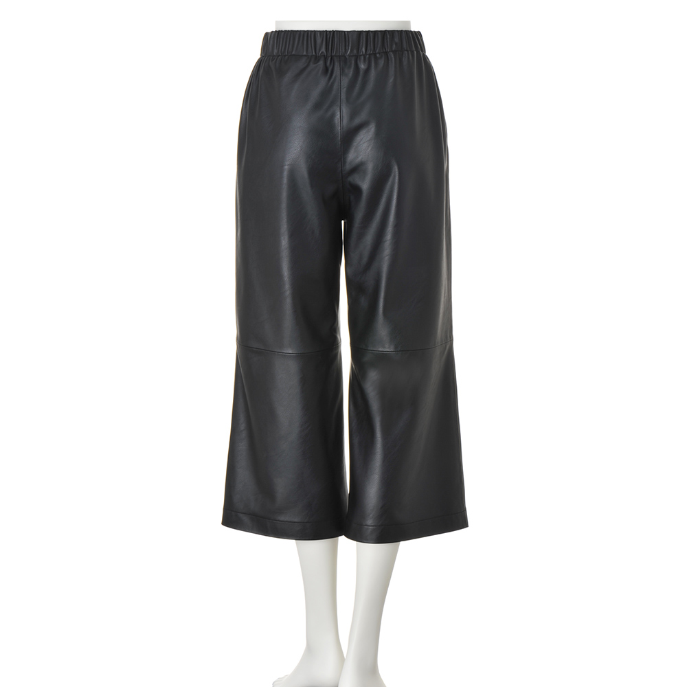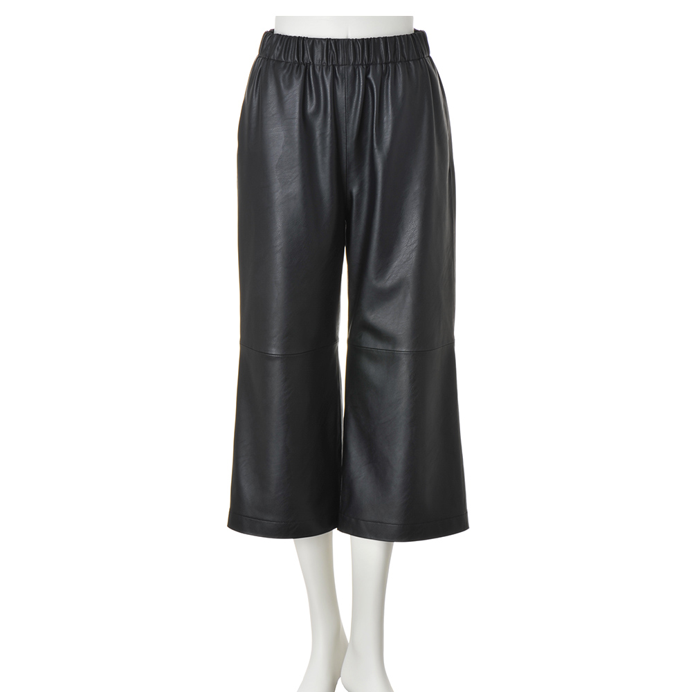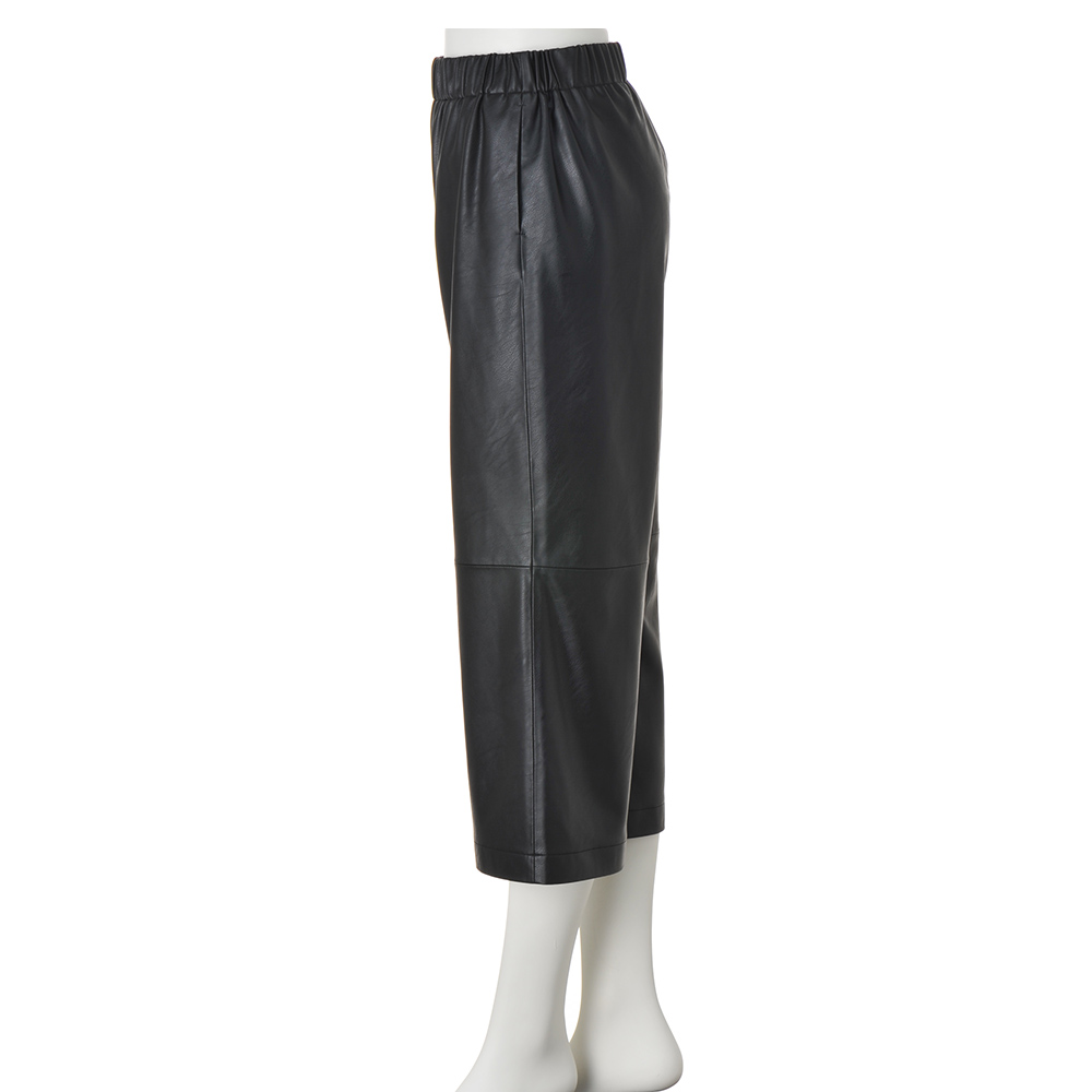 サステナブルな素材でつくるこれからの上質マニッシュボリューム感がありながら、スマートに着こなせるセミワイドのクロップドパンツ。リッチで艶やかな素材は、土に還る「ヴィーガンレザー」と呼ばれる合成皮革です。レザー専門縫製工場で仕立てた本格派ですが、ウエストは総ゴムのプルオンタイプでイージーに。軽くてソフト、伸縮性ある楽なはき心地で、季節を問わず活躍します。