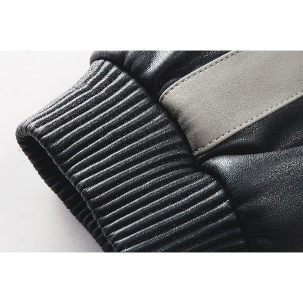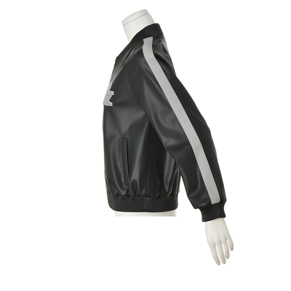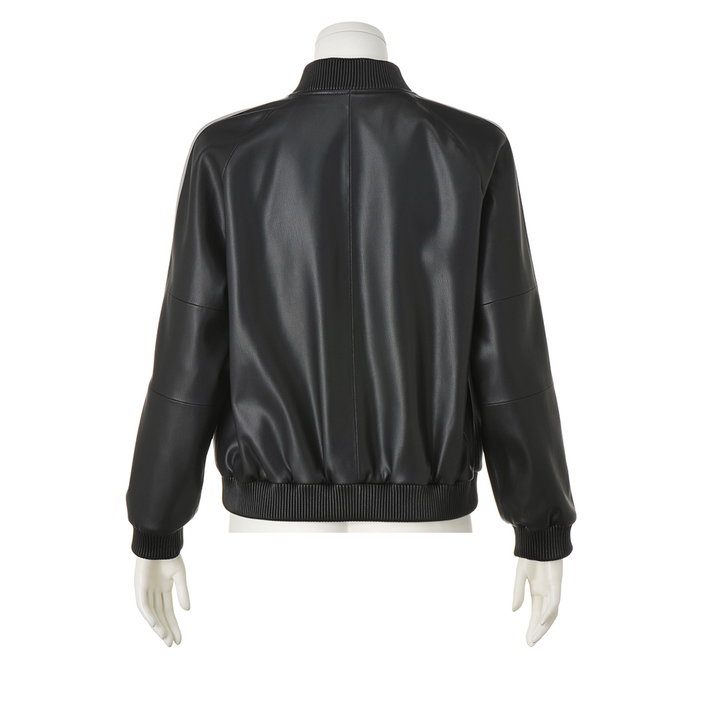 POINT! 襟、袖口、裾は合成皮革の生地を加工した、スポーティかつラグジュアリーなリブ仕立て。