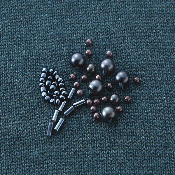 形の異なるさまざまなビーズを組み合わせ、繊細な鈴蘭を手刺しゅうで表現。