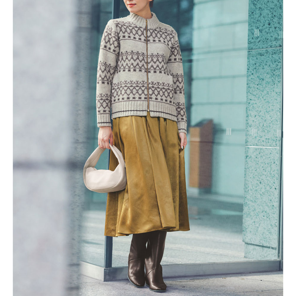 上質な素材と質感を組み合わせてフェミニンMIXな装いを コーディネート例