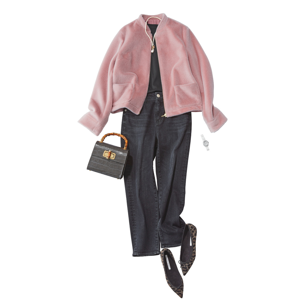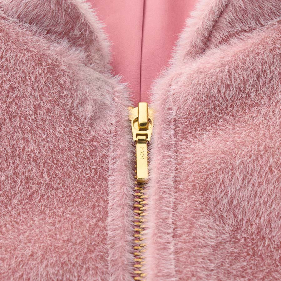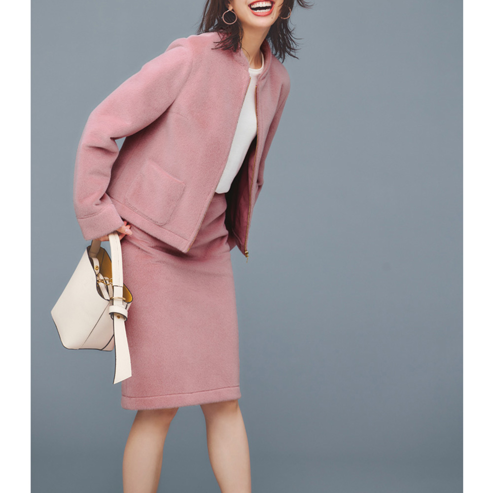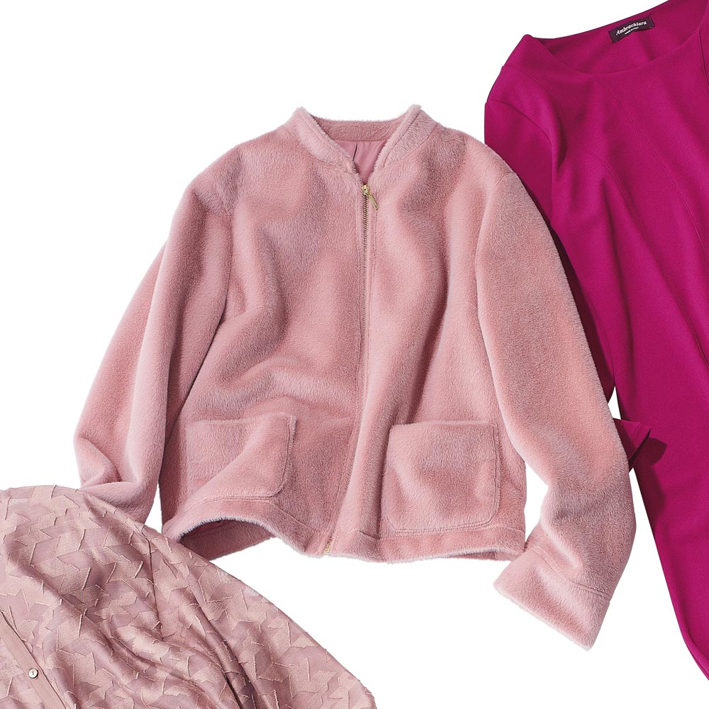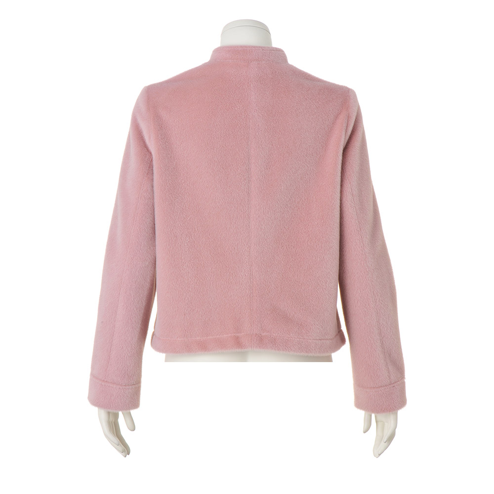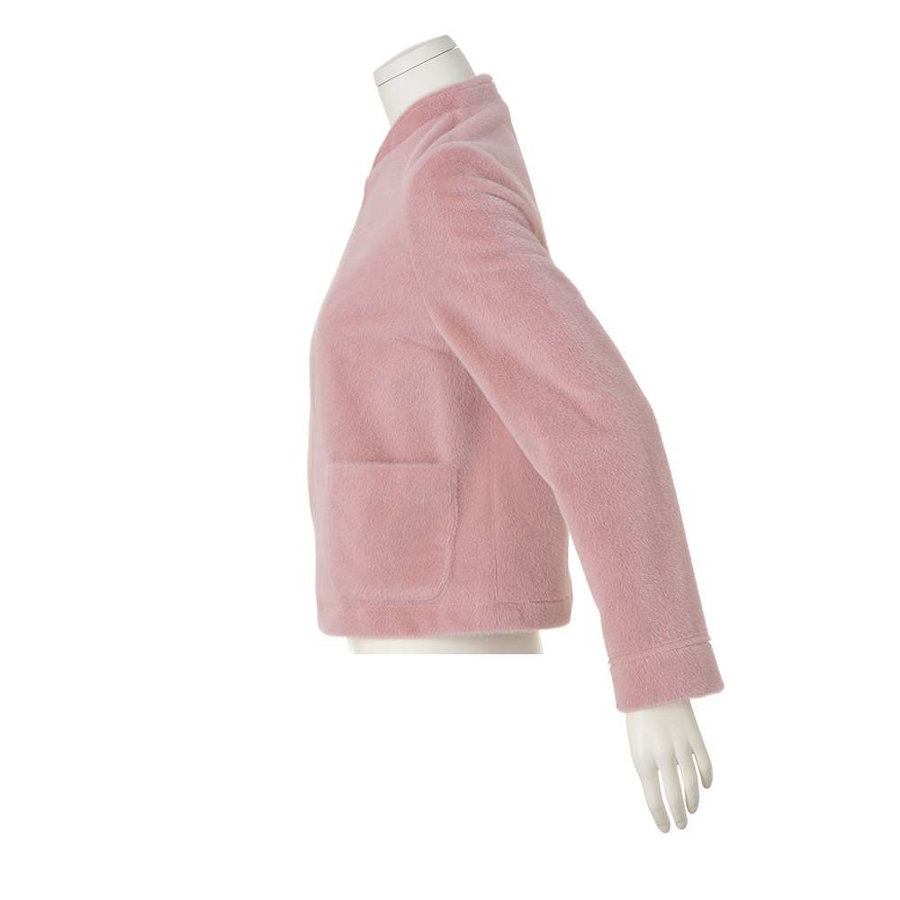 可愛いだけじゃない!凜とした美しさが宿る“PINK”トレンドのピンクは何をどう着る?大人の女性にこそ似合う絶妙カラーリングのピンクをご紹介!NUANCE PINKほんのりやさしいニュアンスのあるピンク短毛のフェイクファーを使ったフェミニンなジャケット。単品使いしやすいシンプルかつコンパクトなシルエット。襟裏や見返しは別布使いで上品に。