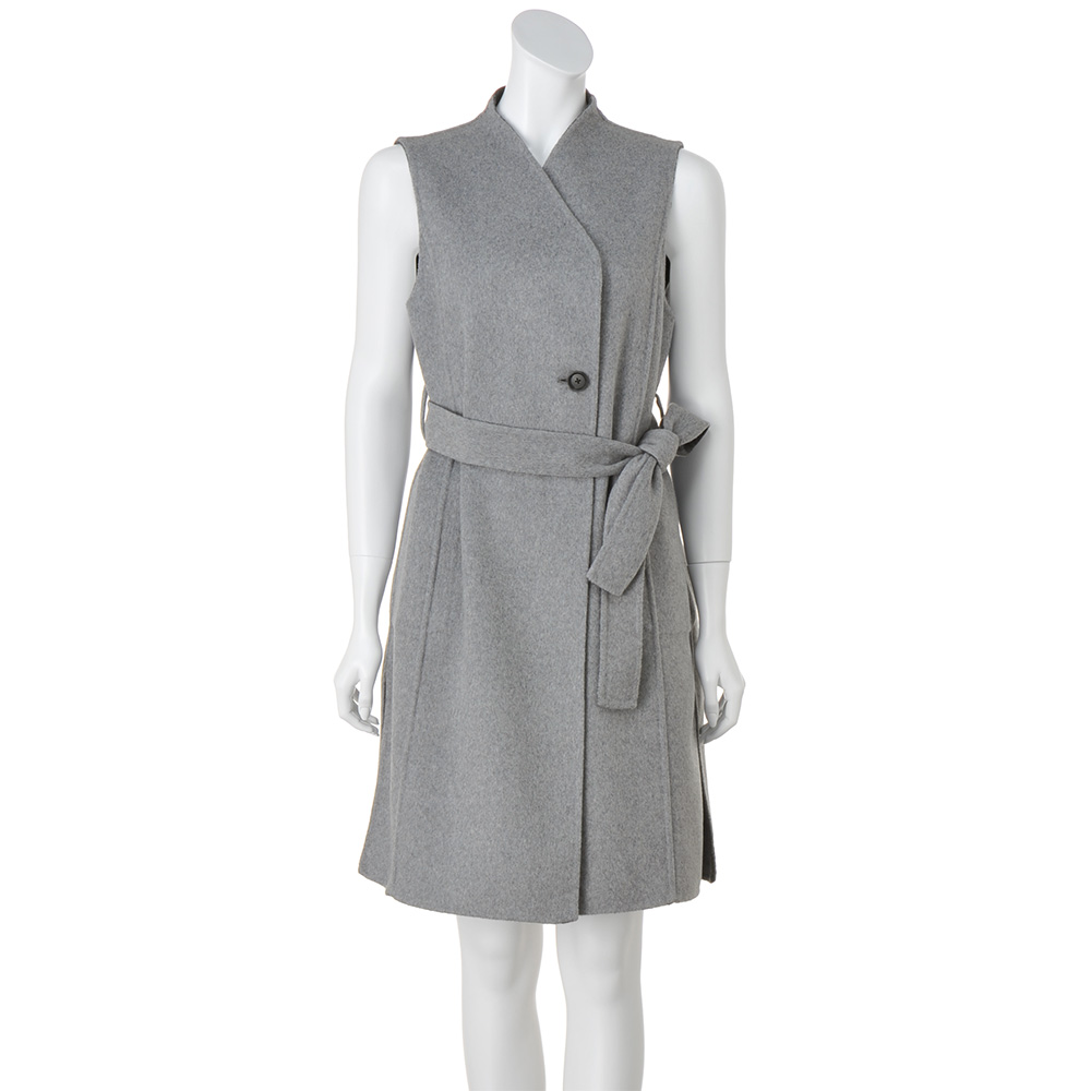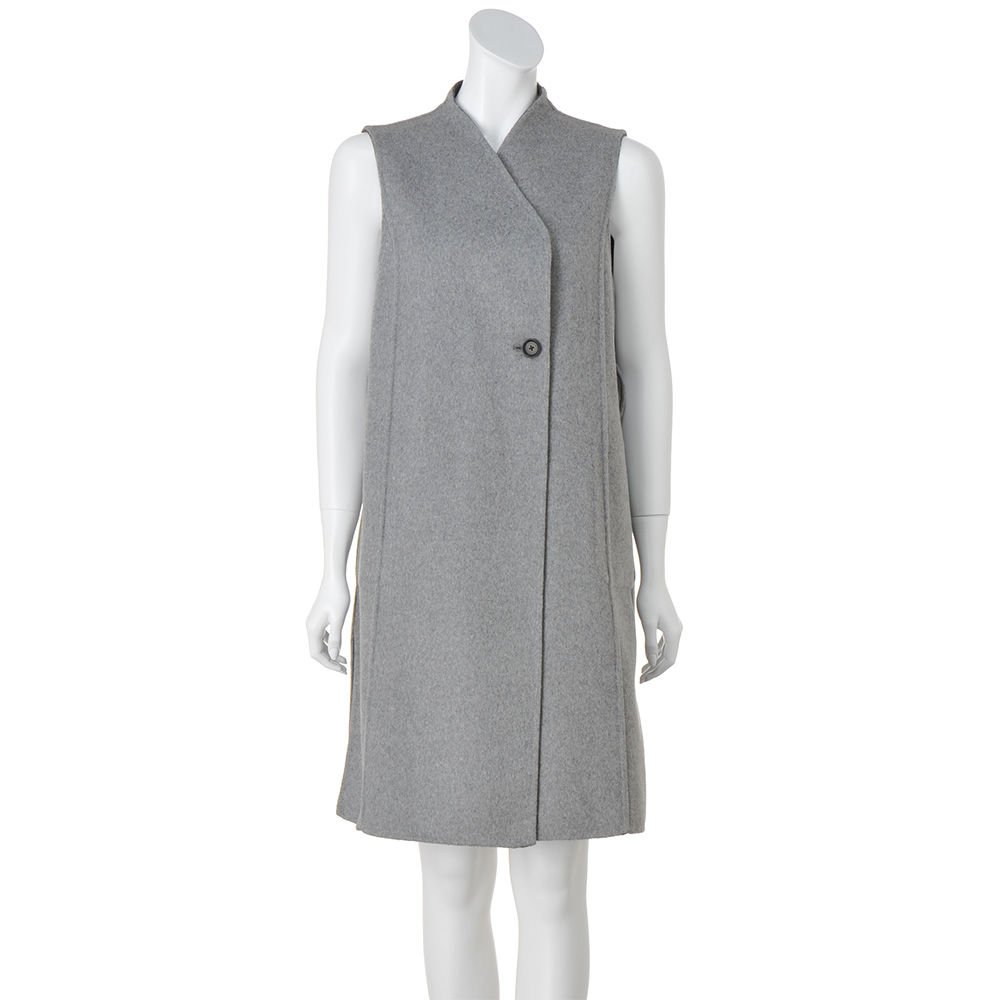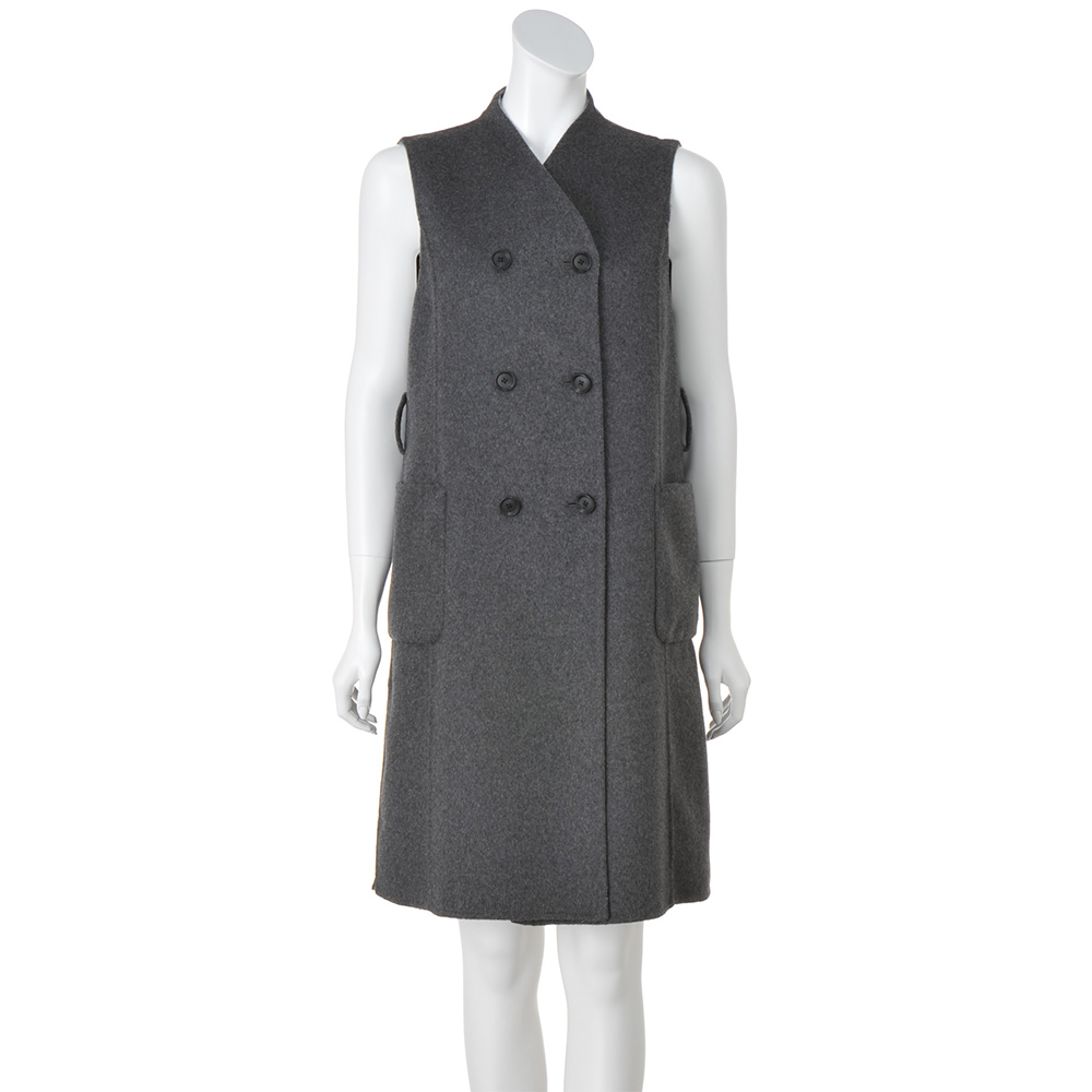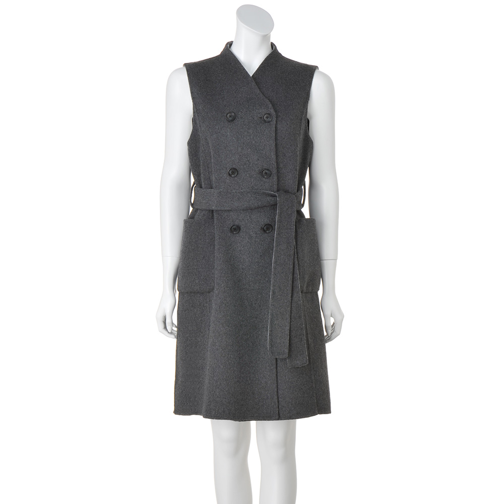 チャコールとライトグレーの2枚の生地を丁寧な手作業で一重仕立てにした、ダブルフェイス素材を使用。生地の裏と裏を縫い合わせるため、両面外側は表地となり肌に触れる部分は触り心地がよいのが特徴です。ウール高混率ならではのしなやかさも魅力。両面でボタン位置を変え、異なるムードのリバーシブル仕様に。ベルトもダブルフェイスで着こなしのアクセントに。Iラインを強調するシルエットがスタイルよく見せてくれます。長め丈ながら両サイドスリット入りで足さばきも◎。同シリーズのスカート(商品番号:PC5935)とのセットアップとしても着られます。