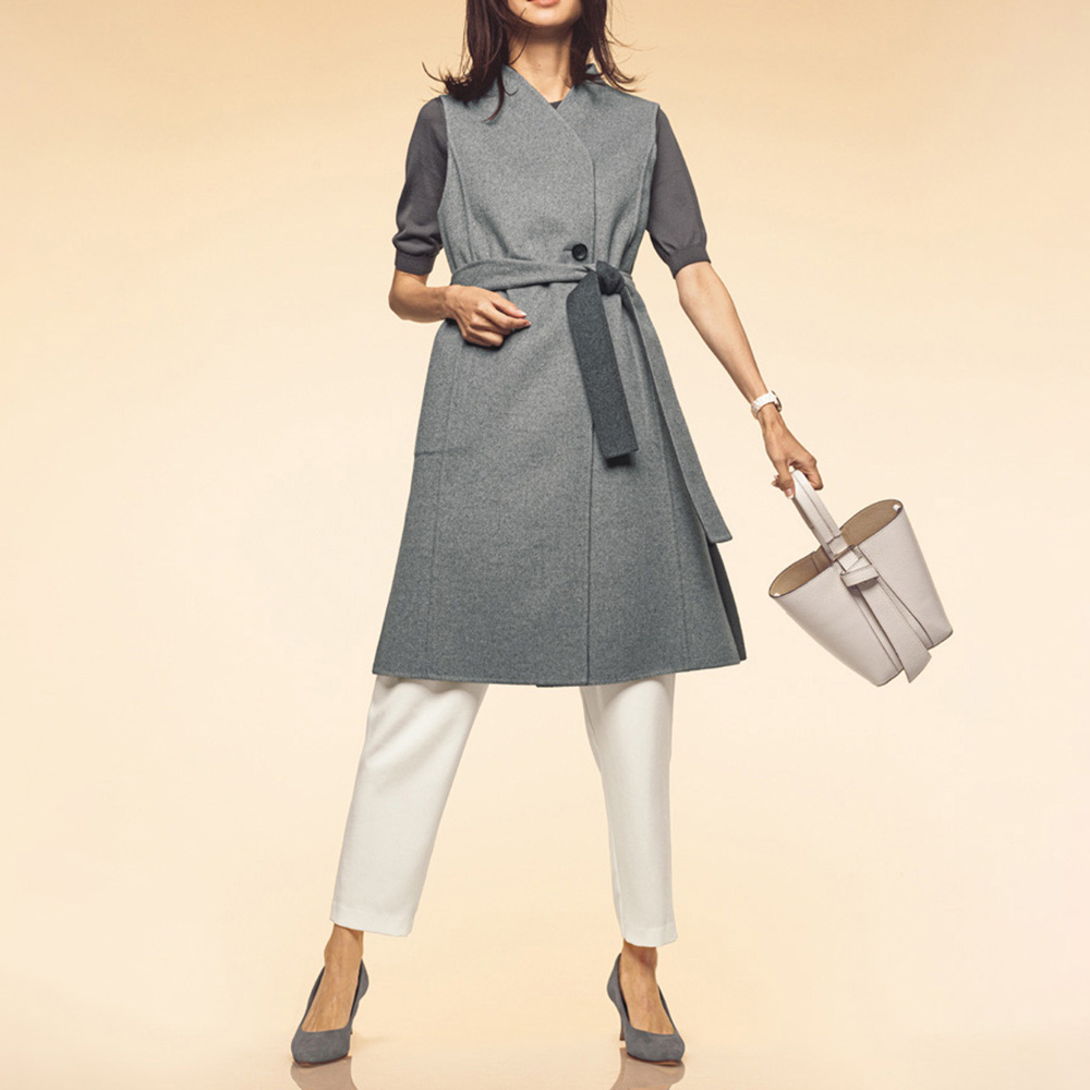 コーディネート例(ライトグレー面) /簡単に印象変化が叶う 一着で二着分楽しめるリバーシブルジレ