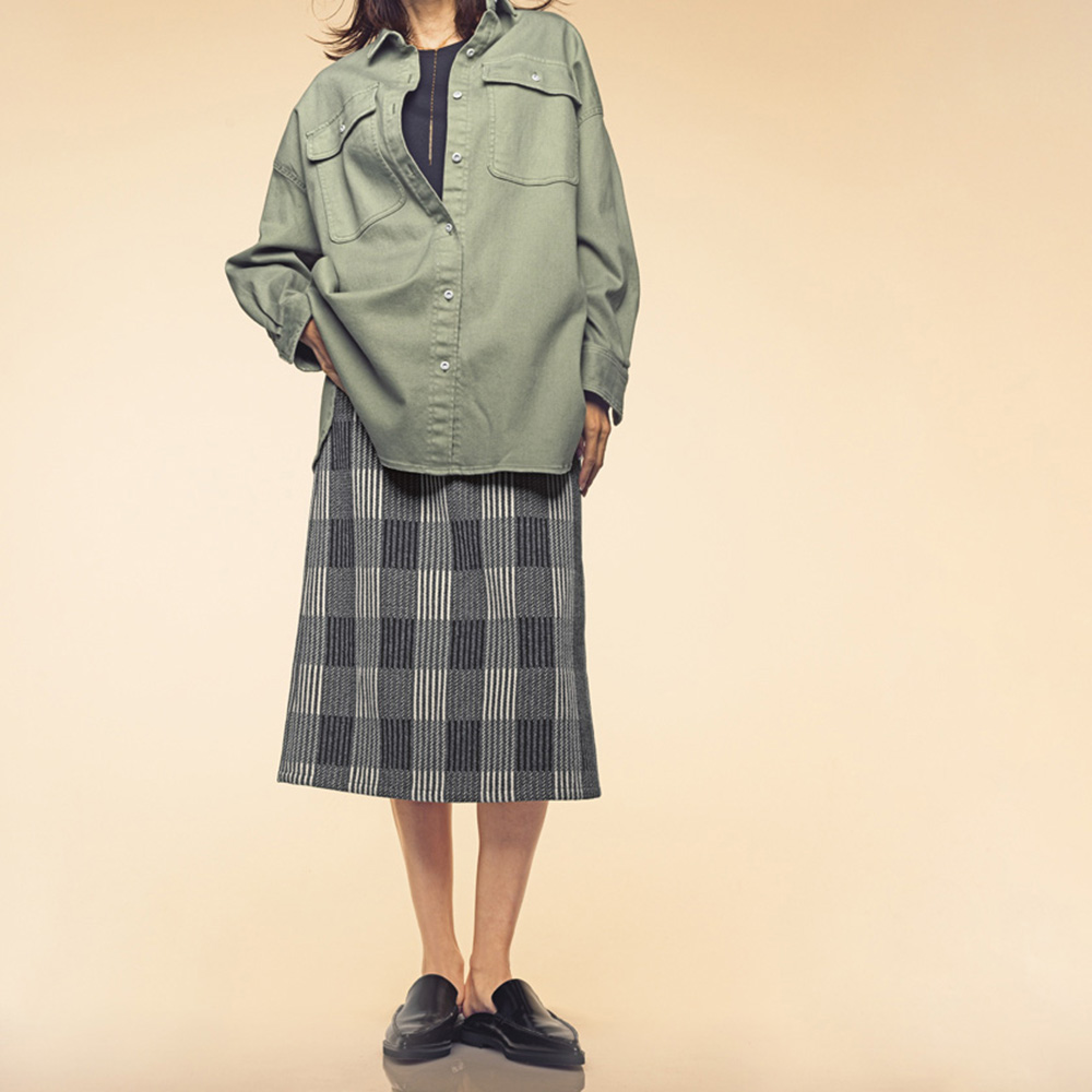 コーディネート例 /ビッグシャツに女性らしいスカート合わせが今年らしいチョイス