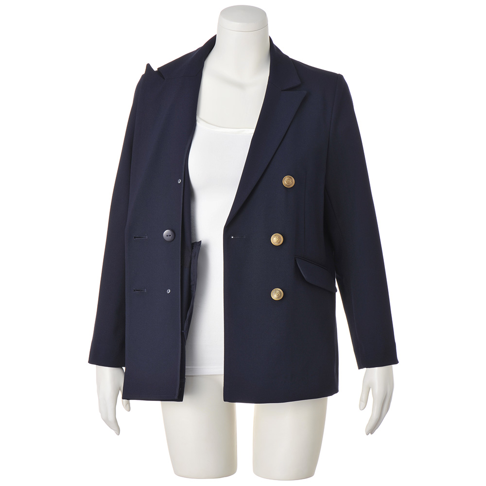 マニッシュさをプラスして洗練スタイルに。しなやかな質感の素材がレディなムードを、ダブルボタンと長めの着丈がマニッシュさをプラス。横ストレッチ性があり、きちんと見えしながらかっちりしすぎず、カジュアルな装いにもマッチします。