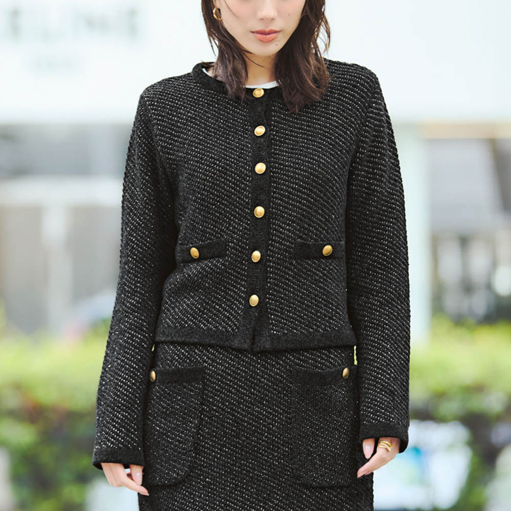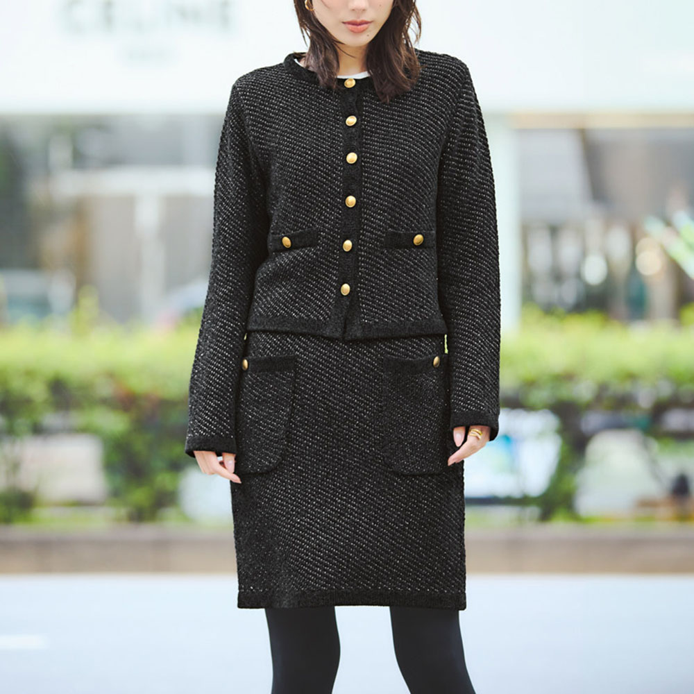 • コーディネート例 /エレガントな表情ながら着心地楽!ツイードライクなラメ混セットアップ