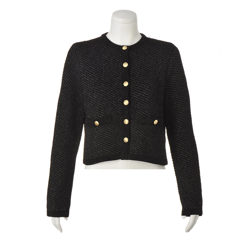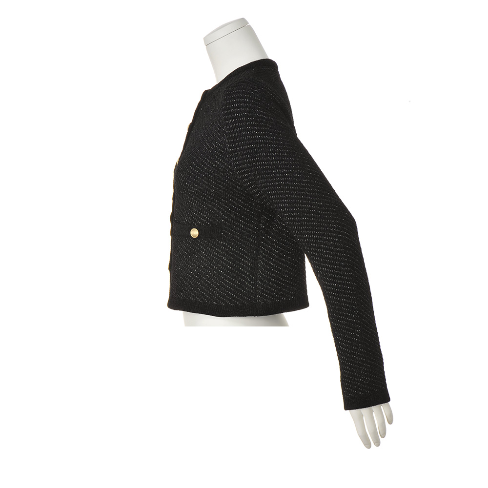 旬のエッセンスを程よくブレンド!心躍る、おでかけ服コンパクトなジャケット感覚で楽しめるクルーネックのカーディガン。トレンドのモール糸の奥にラメの煌めきがのぞく、上品で洗練された編み地感が魅力です。単品でも活躍し、幅広いコーディネートが楽しめます。≫ POINTベロアのようなモール糸とラメをジャカード編みにした凝ったニット。伸びやかで着心地がよいのにきちんと見えします。