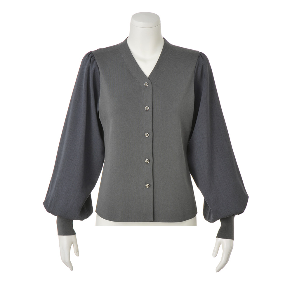 異素材使い バルーンスリーブ カーディガン ニット セーター ファッション PC6059