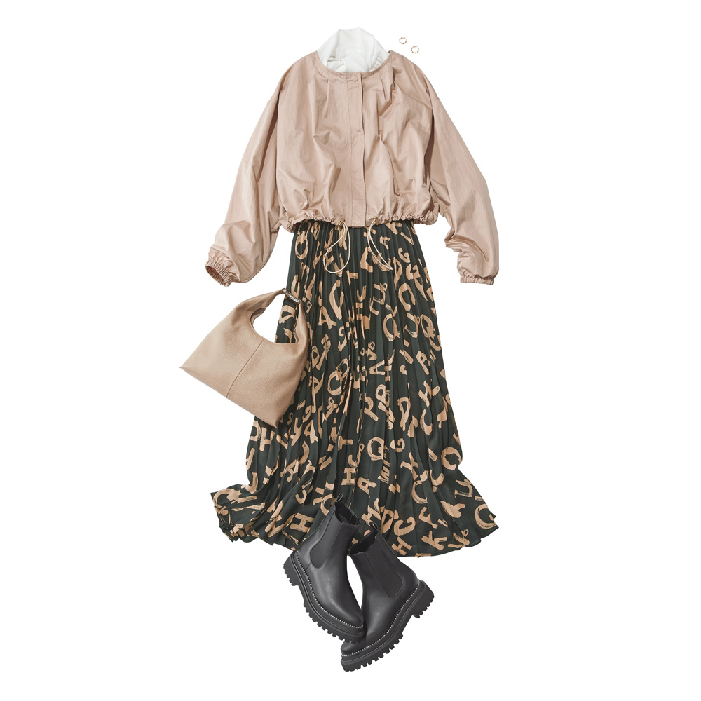 (ア)シャンパンベージュ コーディネート例(ブルゾンで) /ショート丈で脚長見え&ロングスカートとも好相性◎