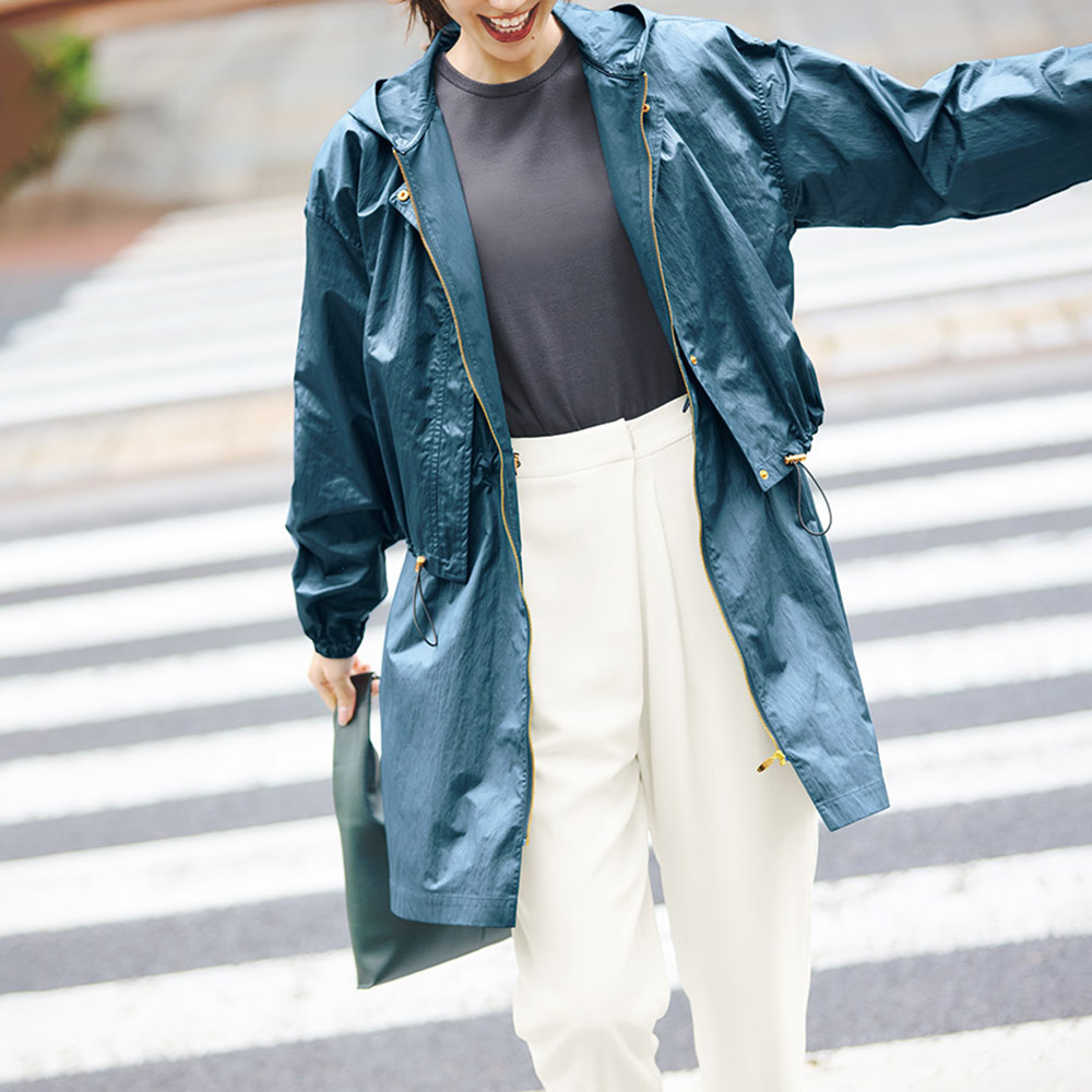 3WAYレイヤードマウンテンパーカなら組み合わせ自在で気温変化にも対応できるから。暑かったり、肌寒かったり、気温の変化にからだがついていかないときは、変幻自在な頼れるアイテムを投入すべし。微光沢で華やかさがあり、カジュアルになりすぎず着られるブルゾン&ジレのセット。それぞれ単品で着映えるのはもちろん、セットで着用した際の丈感バランスやシルエット変化を楽しめるドローストリング付きなど、細部までこだわリ満載。暑い時期の単調になりがちなスタイリングにプラスしたり、肌寒いときにはしっかりアウターとして活躍します。
