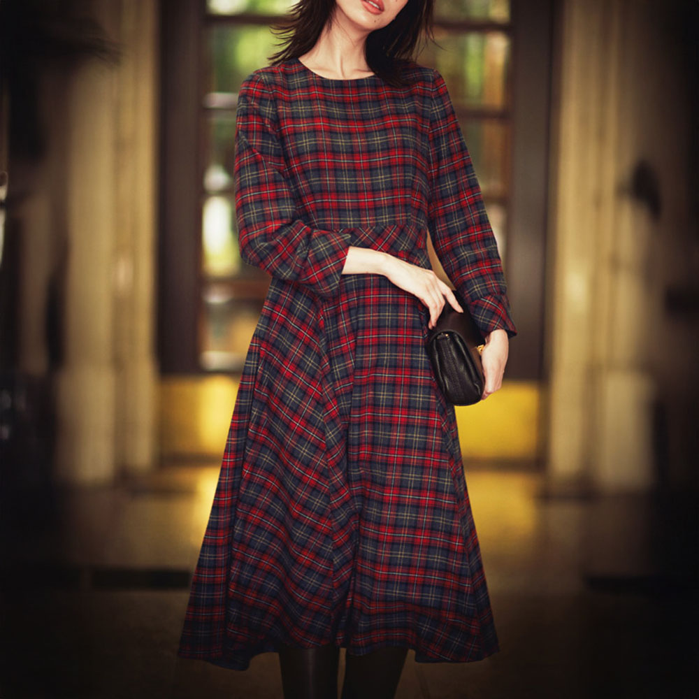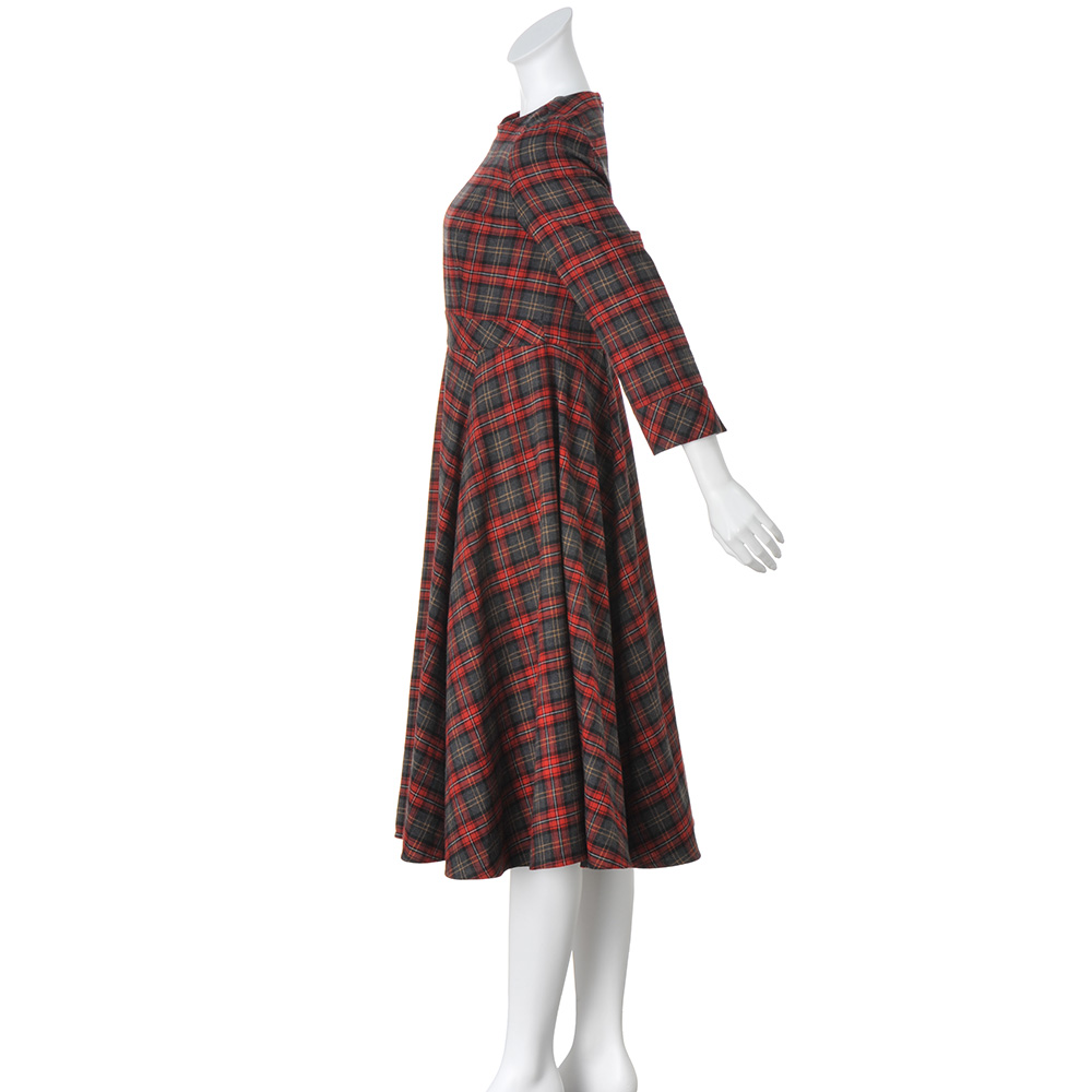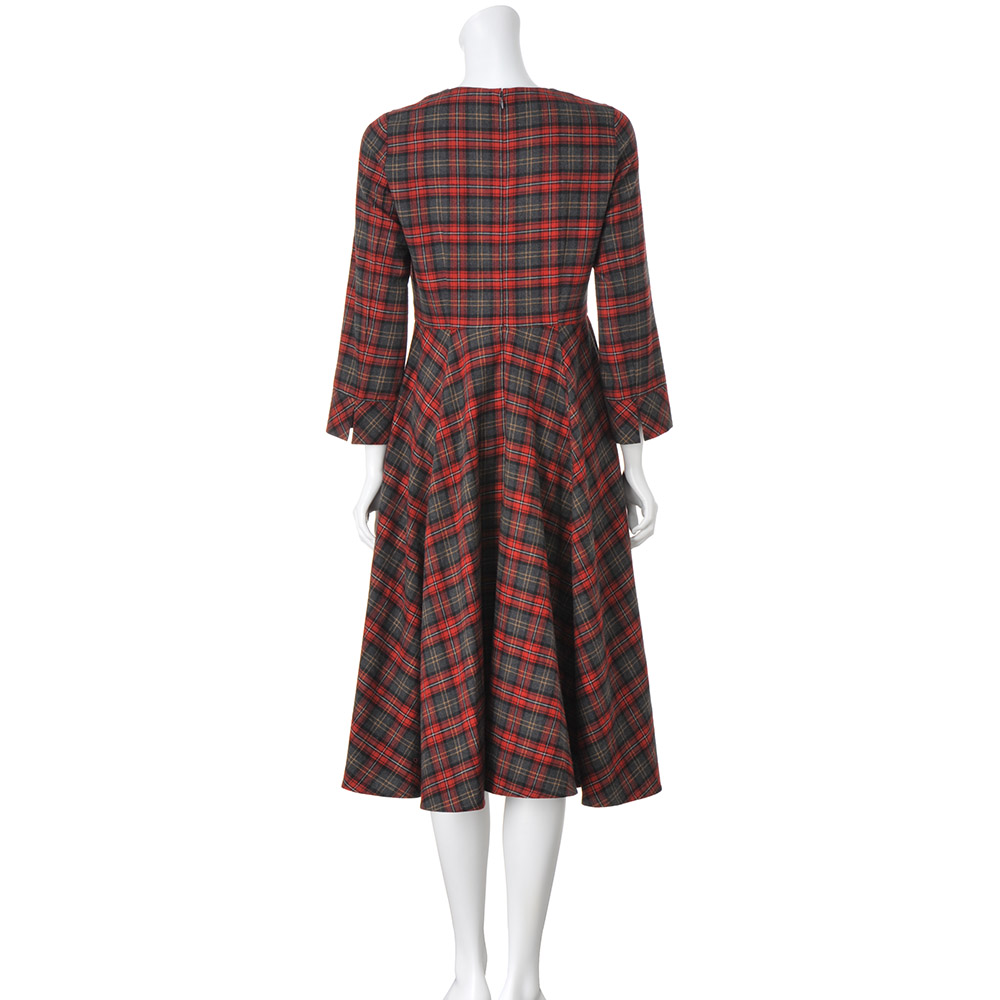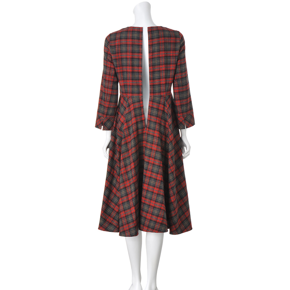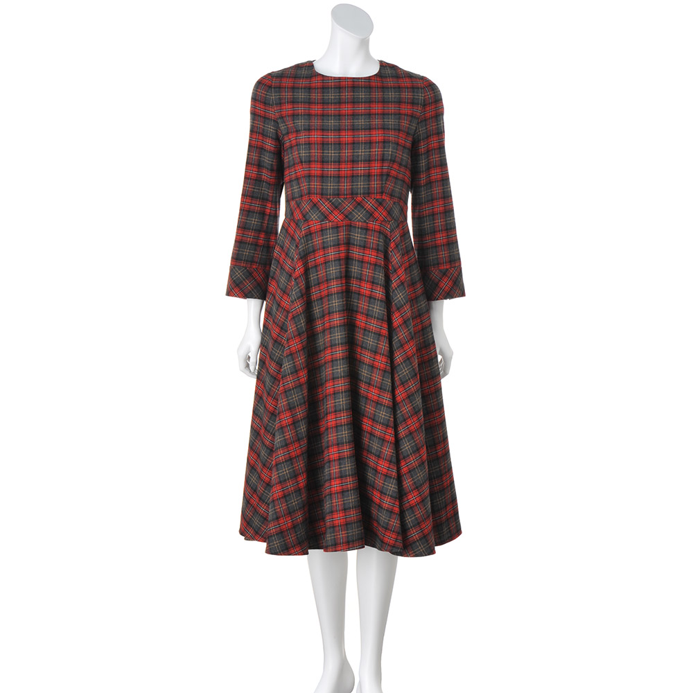 程よい肉感を持つ柔らかな起毛生地を使った、タータンチェックのフレアワンピース。スカート部分は5枚接ぎでたっぷりとした分量を入れつつ、上半身はダーツを入れてすっきりと。ウエスト切り替え部分はチェック柄をバイアス使いにしてアクセントをプラスしました。POINT肌ざわりの柔らかな起毛生地。仕立て映えがする程よい厚みがあり、見た目にもあたたかな印象です。