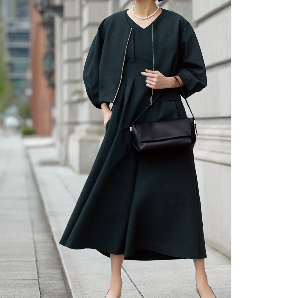 「美フォルムブルゾン」を羽織り、自信ある装い肌離れがよく清涼感のあるサッカー地の中でも、繊細な凹凸感で洗練された印象の素材を採用。シワになりにくいから、終日、美しい着こなしを支えます。拘りのパターンが冴えるブルゾンは、袖山と袖口、裾にもタックを入れて立体的に。軽やかな7分袖、バランスアップするショート丈が着回しの幅を広げます。裏地のない一枚仕立て。素肌が悦ぶ爽やかな着心地を堪能して。