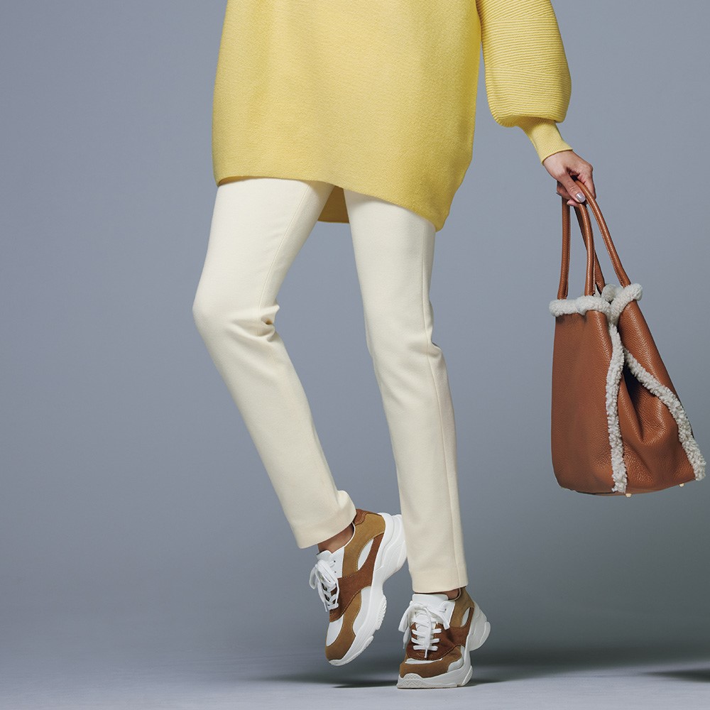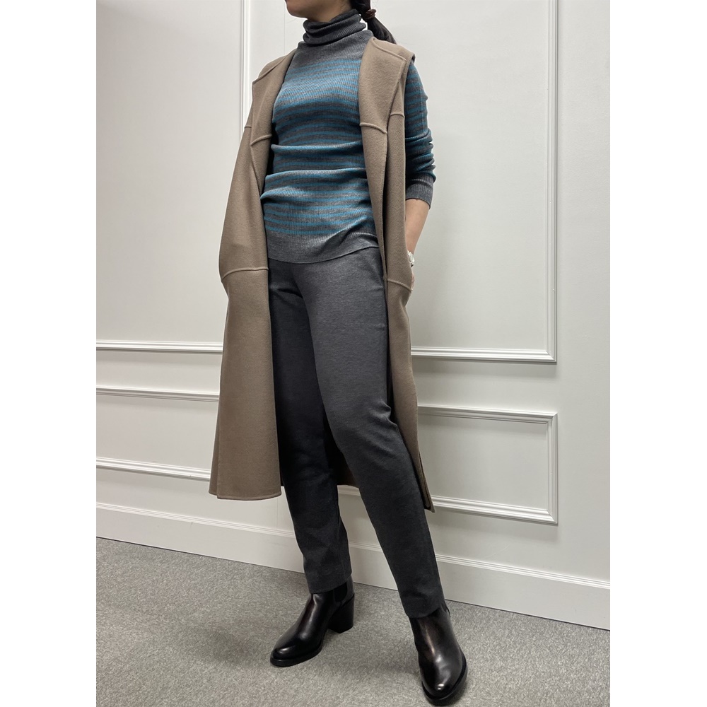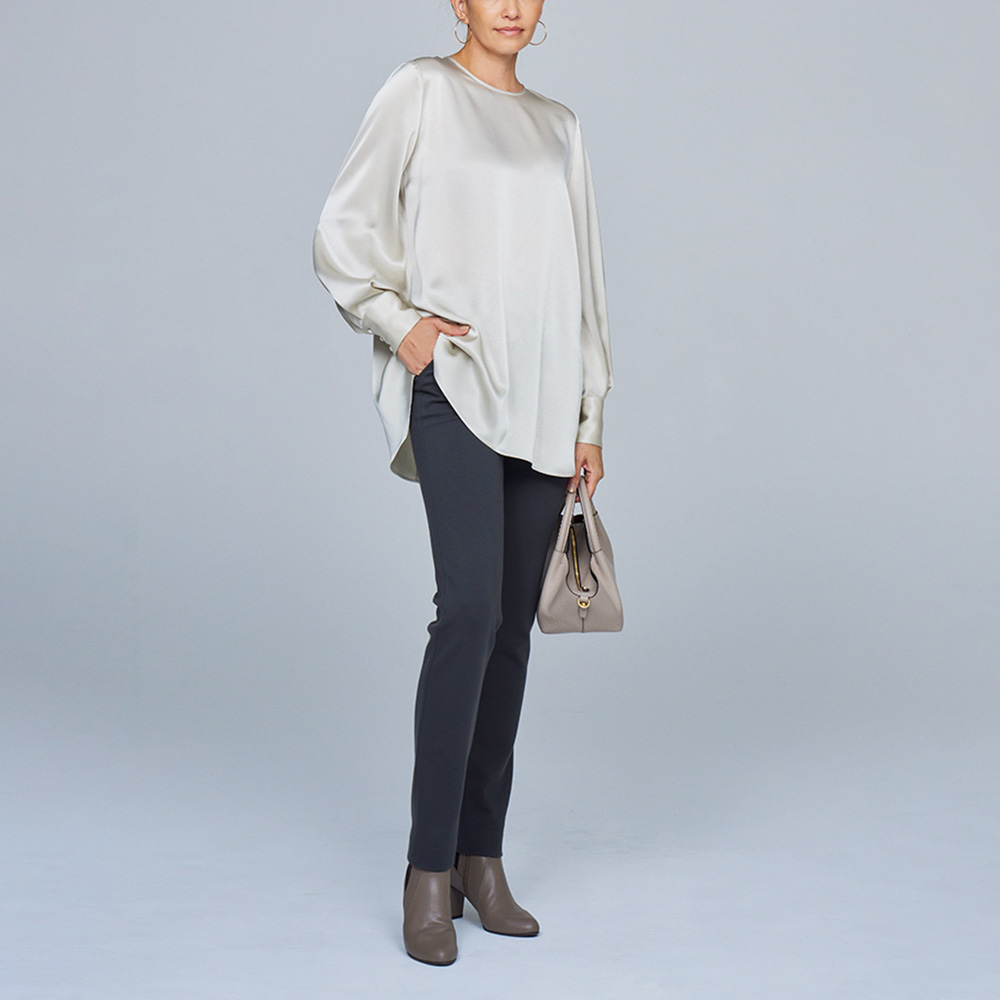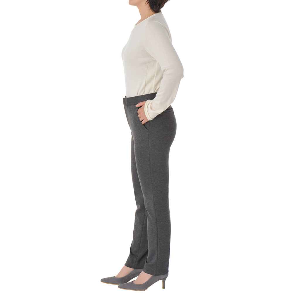 チュニックの決め技、機能性スリムパンツ吸湿発熱機能で、さらっと快適な温もりを生む「東レインターナショナル(株)」ソフトサーモ(R)αのストレッチパンツ。適度な厚さがあり、キックバック力に富んだ高密度ジャージーが、足のラインを拾い過ぎずに“脚が綺麗に見える”とご好評いただいています。はき心地の楽なプルオンタイプながら、きちんとパンツ見えするのも人気の秘訣。