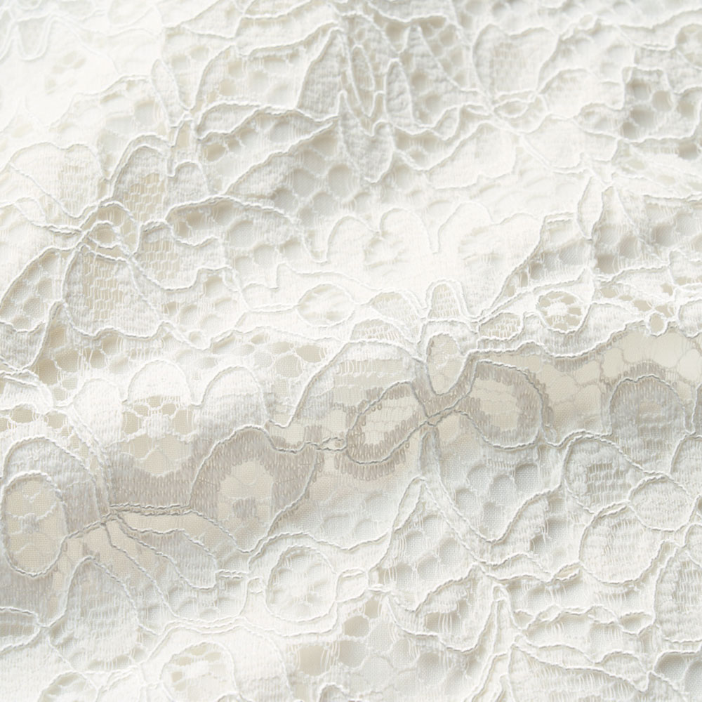 前身頃はコードラッセルレース。ジョーゼット生地を重ねて、透け感を抑えています。