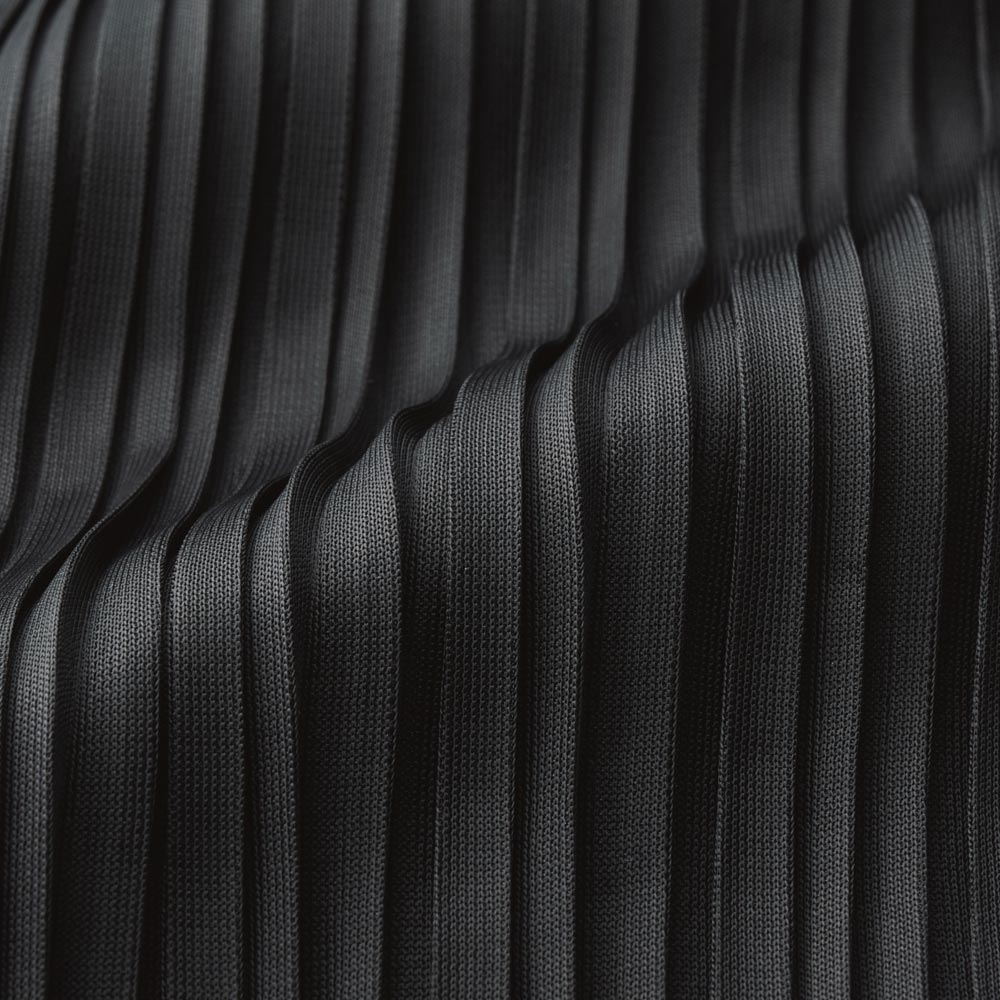 細めのランダムプリーツ生地を使用。しなやかさと艶があり、落ち感も美しい。