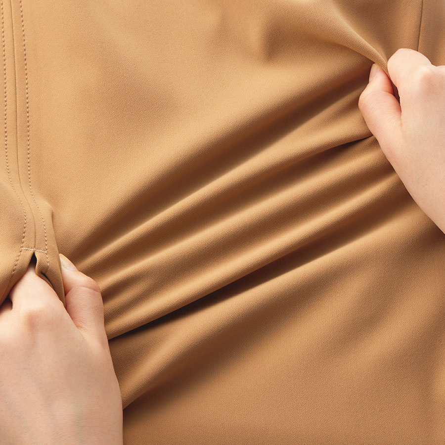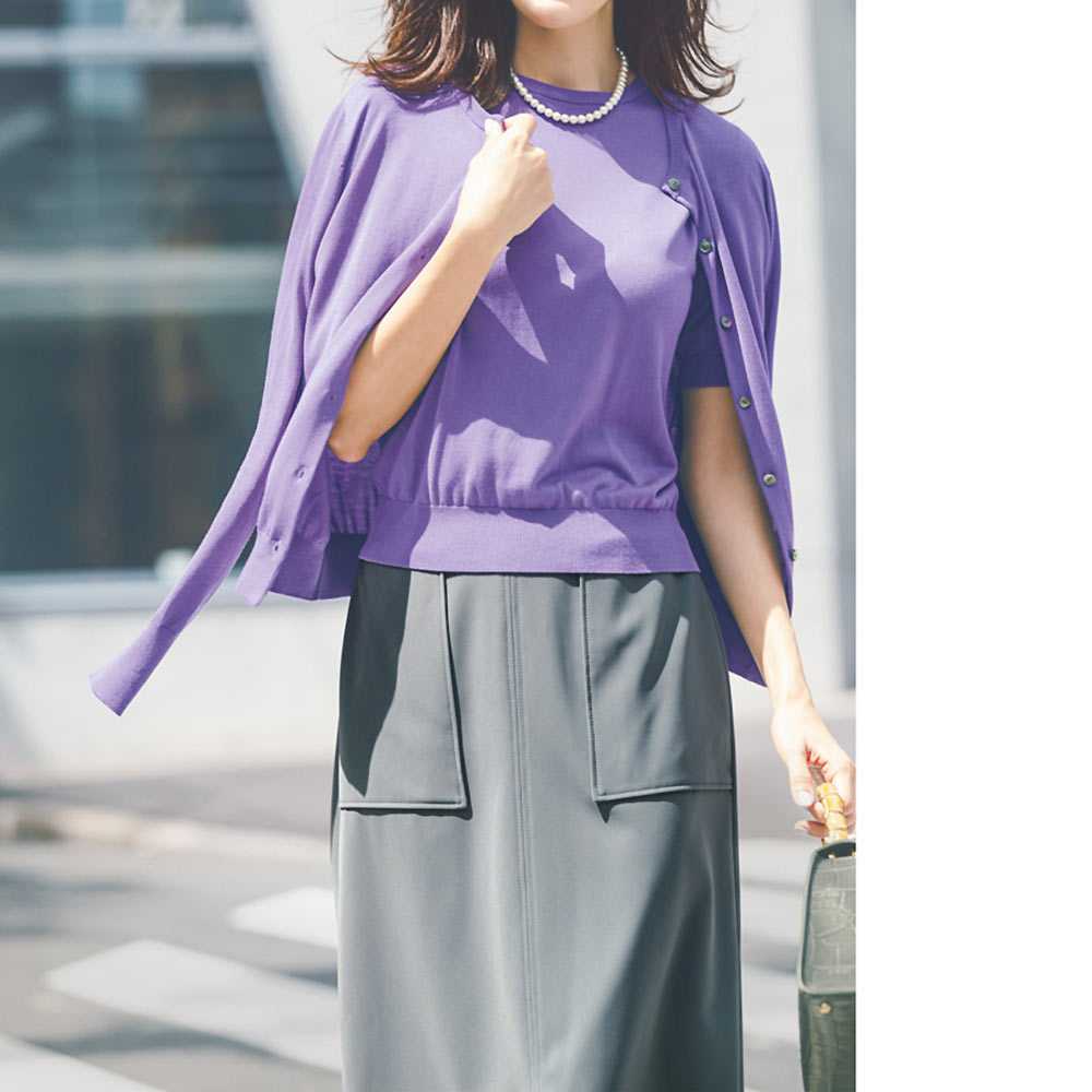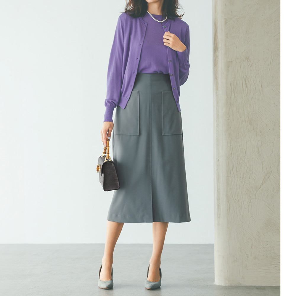 スタイルアップを叶える腰高見えスカート[ UVカット | 2wayストレッチ |防シワ ]腰高に見えると好評の美ラインスカートを、UVカット、2ウェイストレッチ、防シワの多機能素材に。縦のラインを強調する切り替えやステッチワーク、大きめのパッチポケット、深めの前スリットなど、スタイルアップして見せる工夫がいっぱい。・ハイウエストで腰高に見せる計算されたシルエットボディラインを拾いすぎず、すっきり腰高に見せるハイウエストのデザインで、スタイルアップ効果を狙いました。・深めの前スリットで脚をすっきりと見せて前スリットを深めに入れることで縦のラインを強調。同時にふくらはぎを細く見せられるように工夫しました。・まるでジャージー!2ウェイストレッチではき心地も楽ちん高い伸縮性をもつ2ウェイストレッチダブルクロスを使用。まるでジャージーのようなはき心地です。