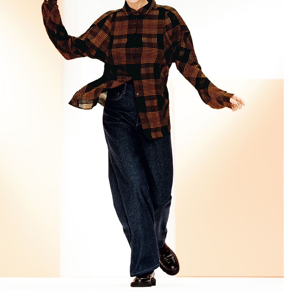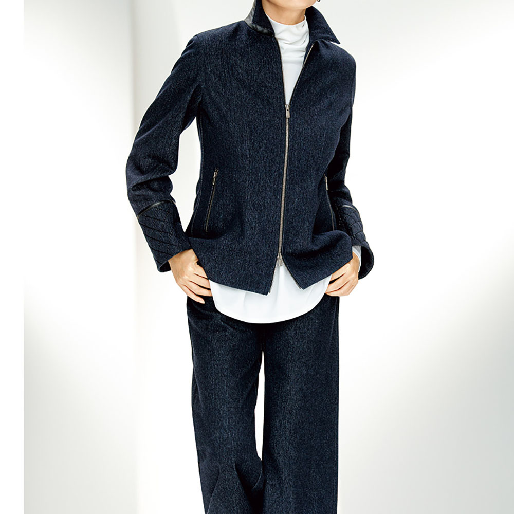 マフデニム素材。5ポケット、ベルト裏・裾裏のチェーンステッチ、股ぐりや後ろ中心、ヨークの巻き縫い…とジーンズ通が愛する正統派仕立てを継承しつつ、安定感のあるやや深めの股上のセミワイドシルエットを完成。シャツをすとんと合わせて洗練されたボーイズスタイルを楽しむのが新鮮です。話題のマフデニムを解説!コットンデニムとは一線を画するリッチな風合いや暖かさにより人気のマフデニム。大人カジュアルを更新する、こなれたかっこよさが光るアイテムに注目。リアルクローズを更新するマフデニム大人カジュアルの定番として人気のマテリアルが、「NIKKE(日本毛織(株))」のマフデニムです。軽やかで柔らかな着用感が心地よく、大人好みのリッチな風合いと暖かさを備えているのが愛される理由。しかもノンウォッシュデニムのような上品な深みのあるインディゴ調カラーでありながら擦れや色落ちの心配がなく、パンツは特殊な加工によりホームケアが可能。