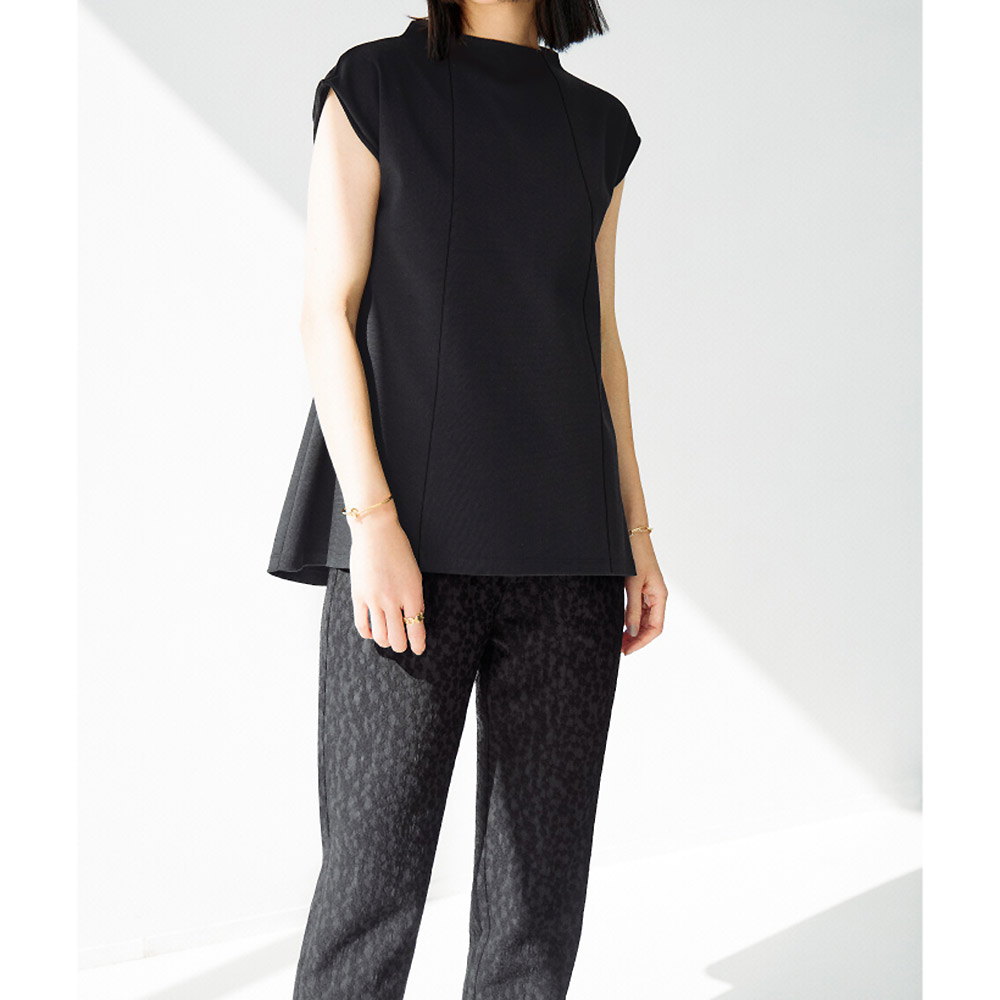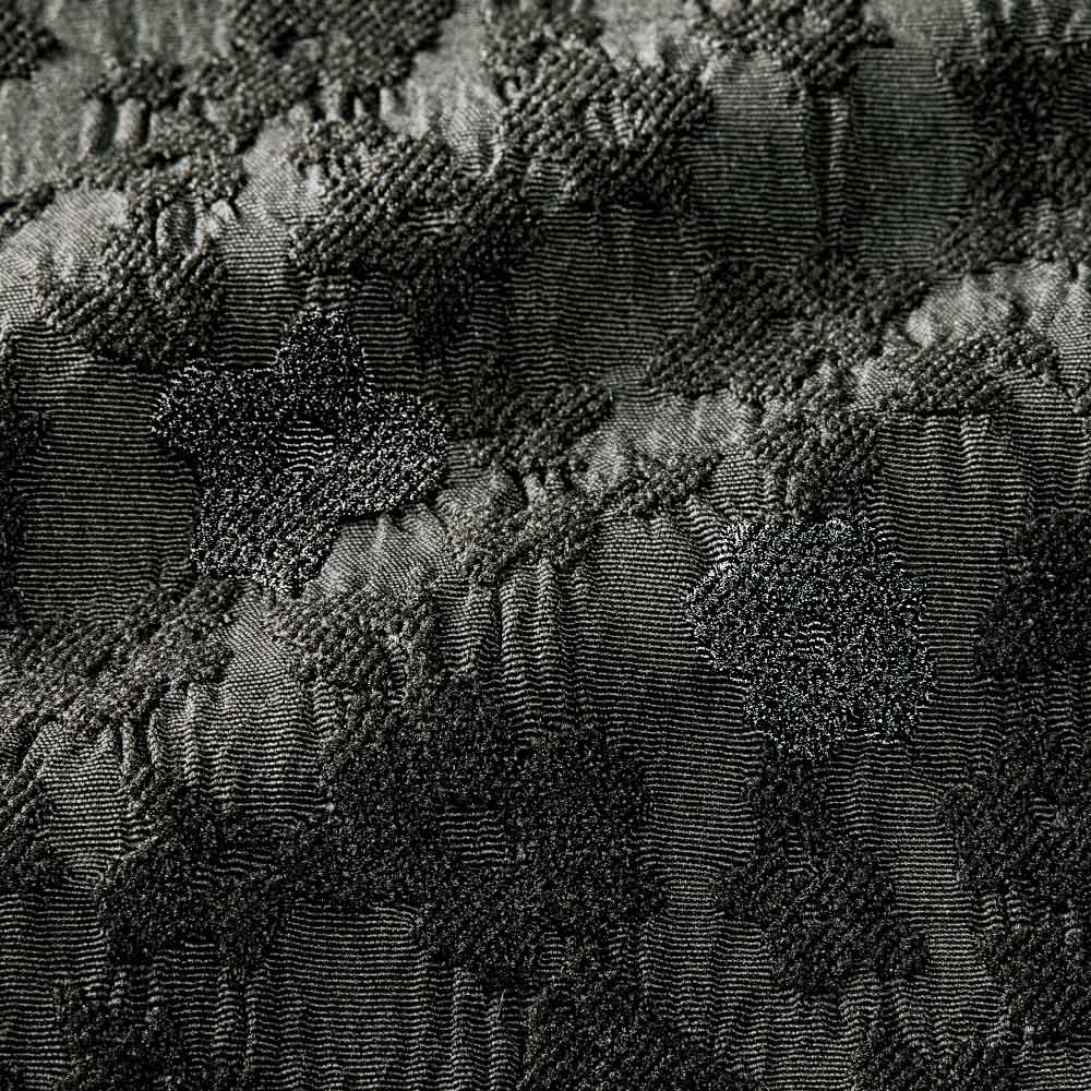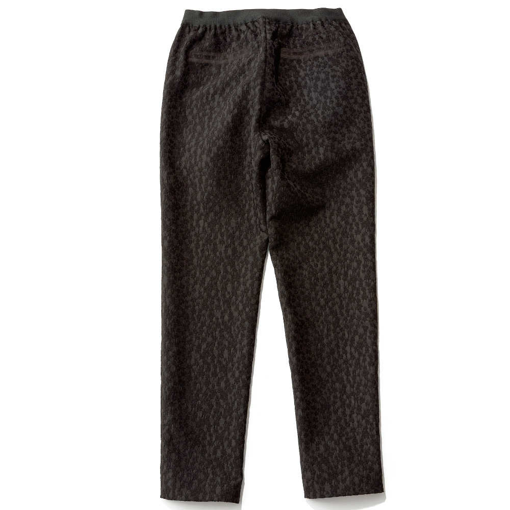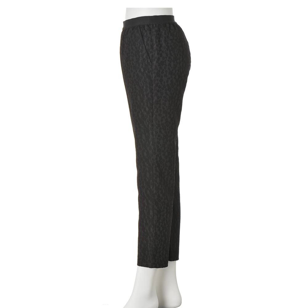 表情豊かな「エレガンスブラック」プルオンタイプ&ナチュラルストレッチでリラクシーなはき心地ながら、すっきりしたスリムシルエットと凹凸のあるジャカードがお出かけ仕様。甘さ控えめのフラワーモチーフがさりげなく見え隠れし、「オール黒」の着こなしに変化とモードなニュアンスを添えます。≫ POINTウエストゴムで楽にはけるテーパードパンツ。後ろのポケットは小尻効果あり。