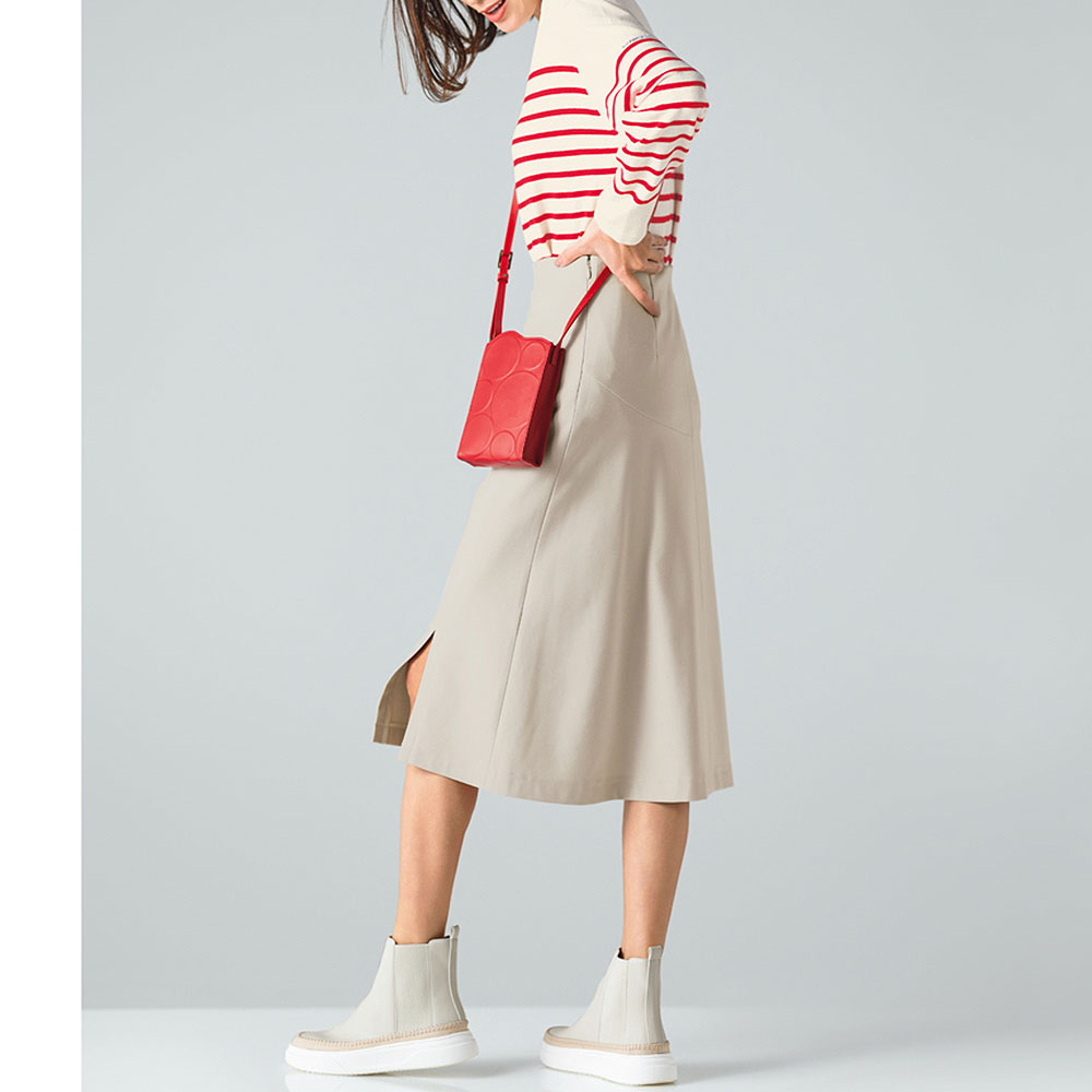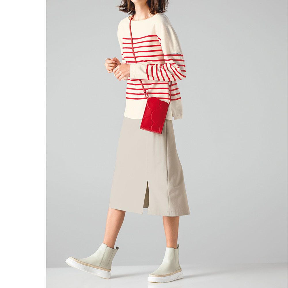 (ア)オフホワイト×レッド コーディネート例 /ウエストインでもアウトでも!バランスアップが狙えるニット&スカート