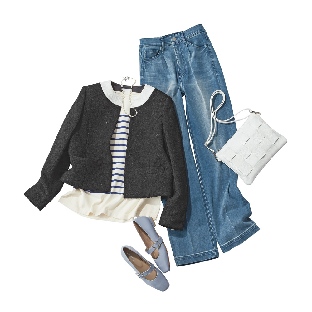 (イ)オフホワイト×ブルー コーディネート例