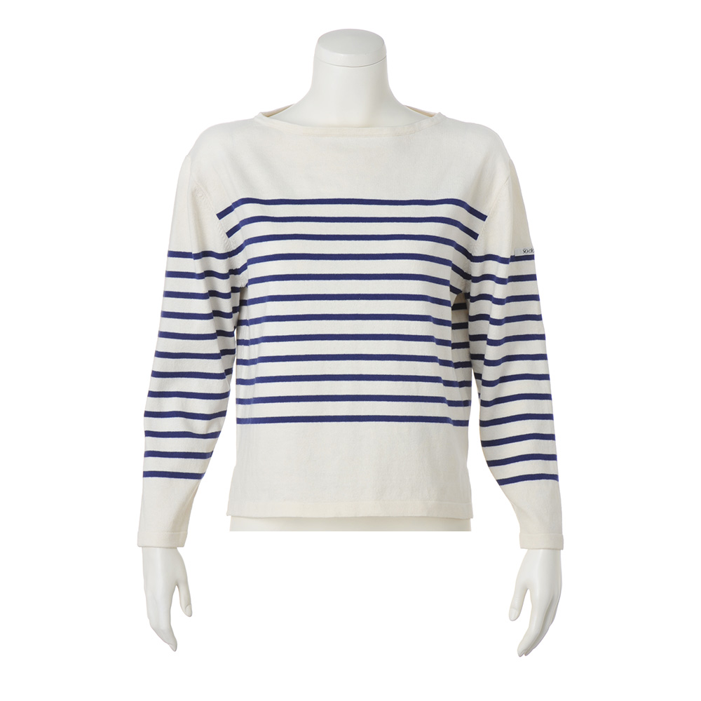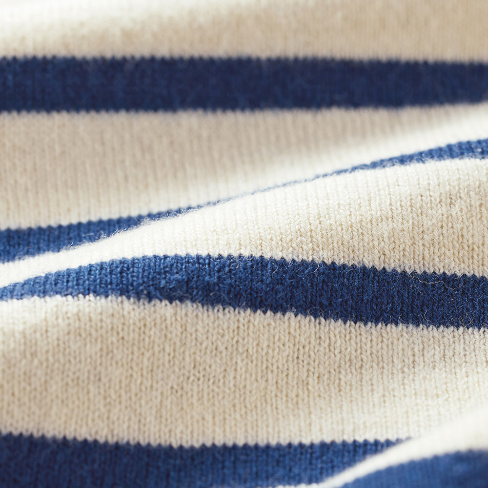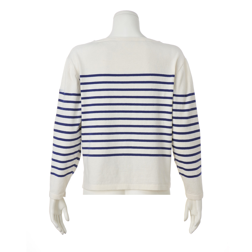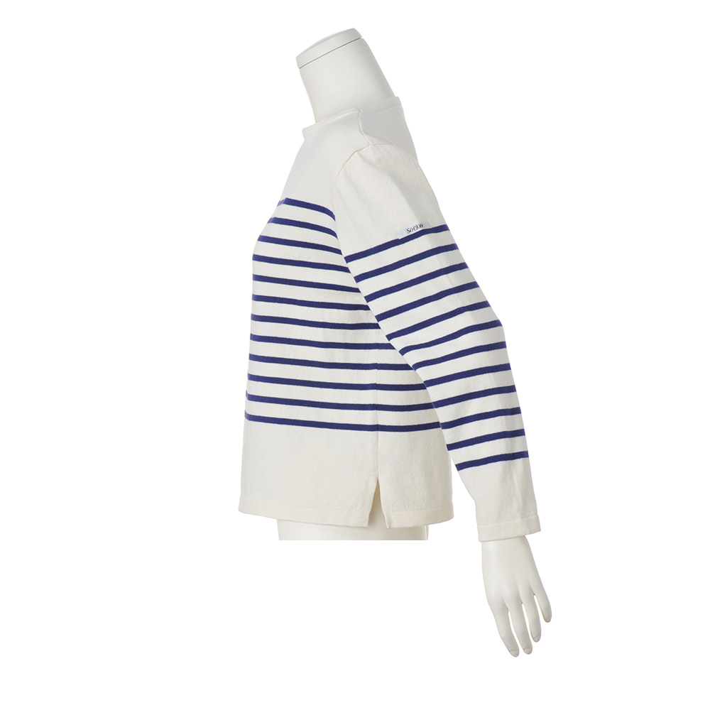 バスクTシャツ感覚で着用できるプルオーバー。あたたかく、肌になじむコットンウールニットでワンランク上のカジュアルに。ボーダーの絶妙な配置は顔映りを明るく見せつつ、こなれ感を出せるようこだわったディテールポイントです。