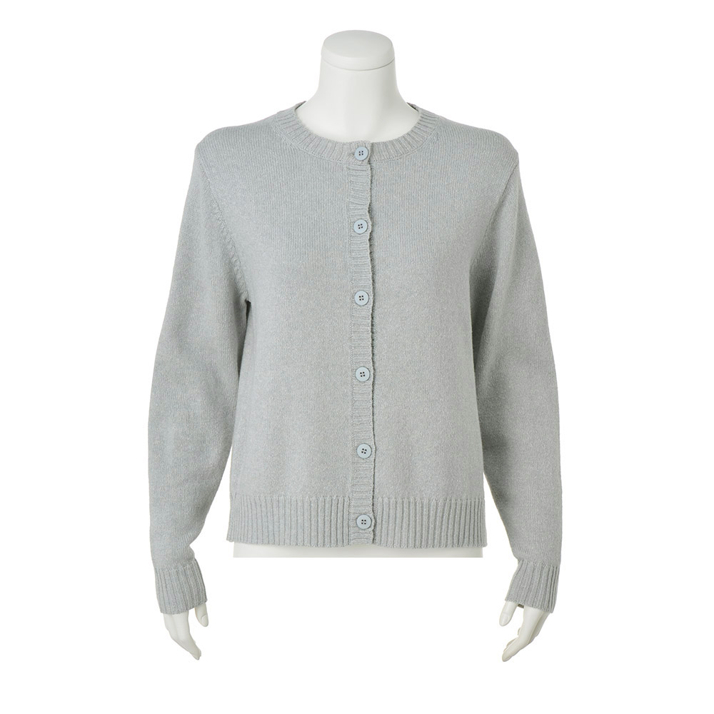 • カーディガンはボタンも同色で カーディガンのボタンは生地と同色に染めています。繊細な色合いを楽しんで。
