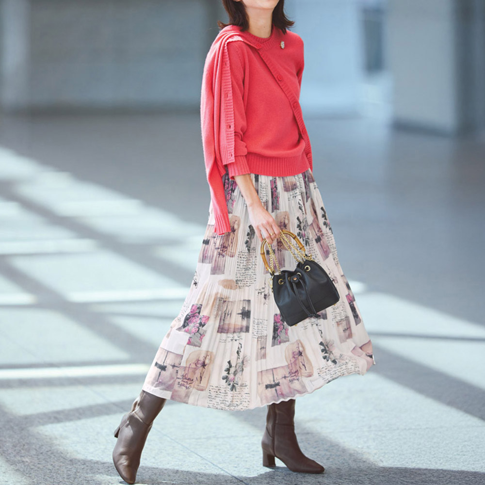 • (ア)コーラルピンク やさしい風合いと発色感、着るだけで心が浮き立つ コーディネート例