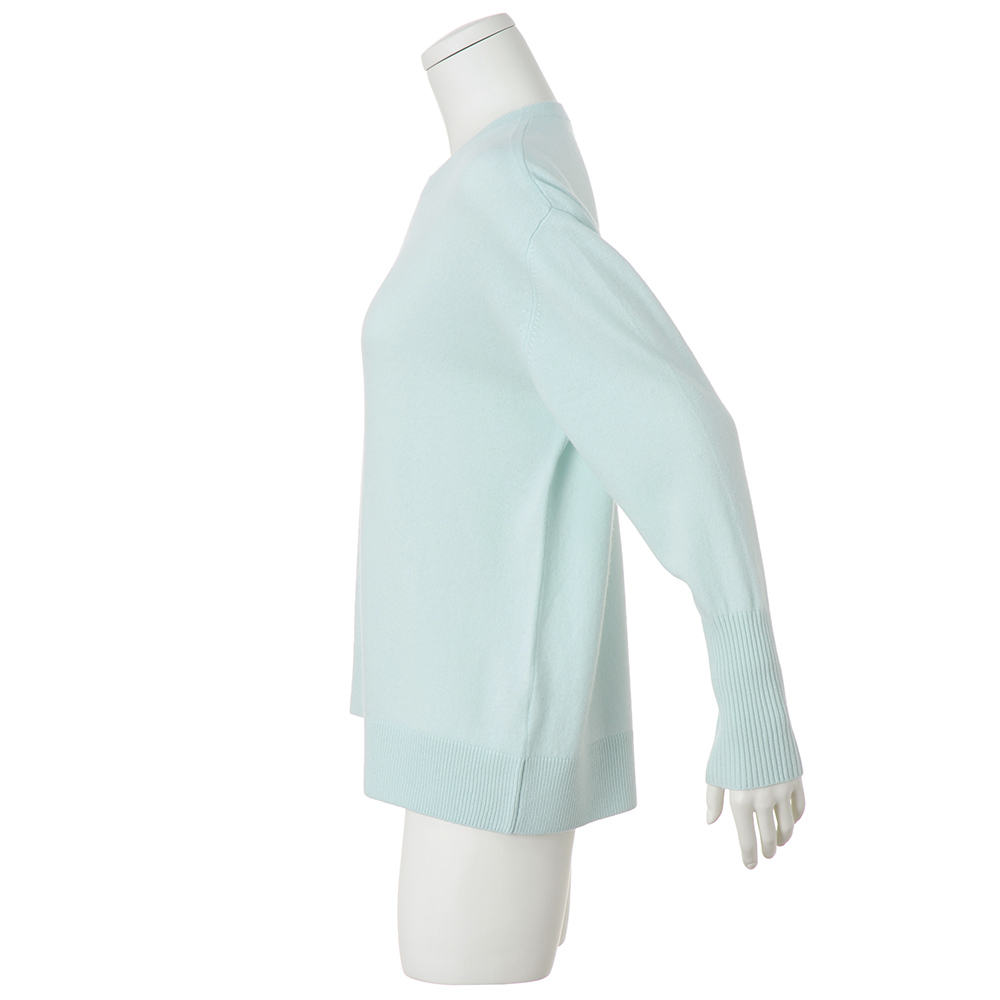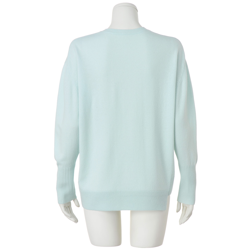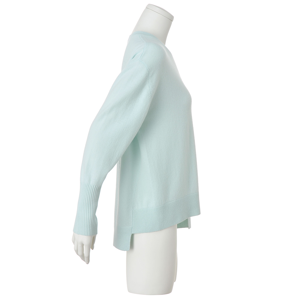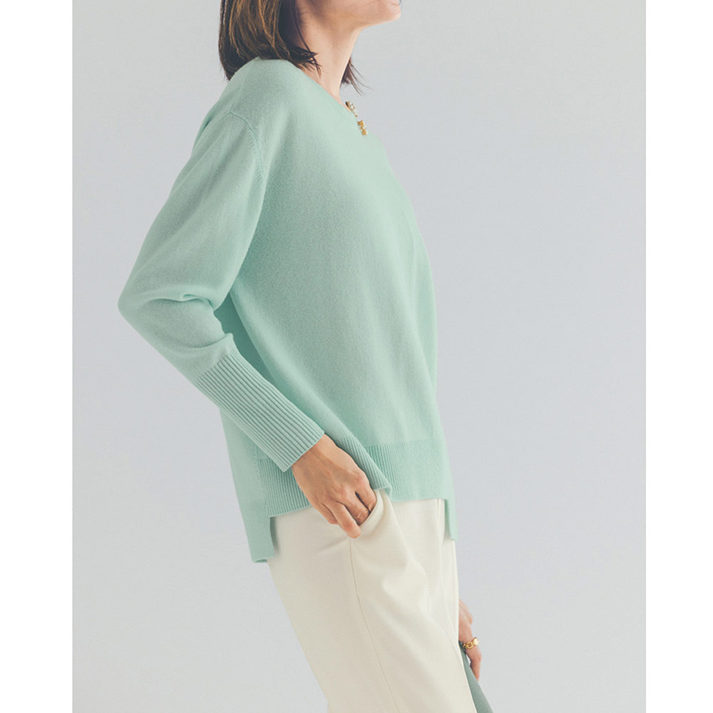 柔らかな風合いとミントブルーで装いがパッと華やぐ柔らかなウールカシミヤの糸を使ったプルオーバー。前後身頃にあえて縦のリンキングをほどこし、裾に段差をつけたイレギュラーヘムデザインが個性的。ゆとりある身幅でリラクシーな着心地ながら、袖口の長めのリブが印象を引き締めてくれます。