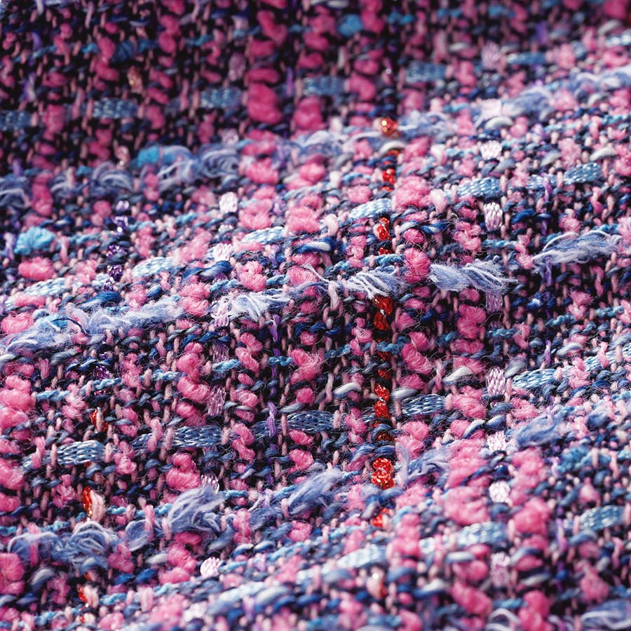 • ピンクをベースにサックス、ネイビー、パープルなどの意匠糸を使い、奥深い色合いを表現。
