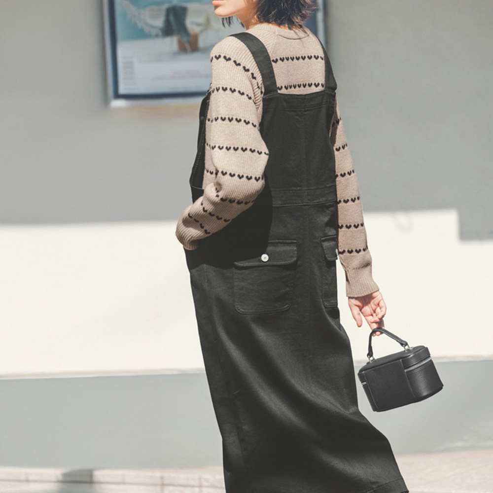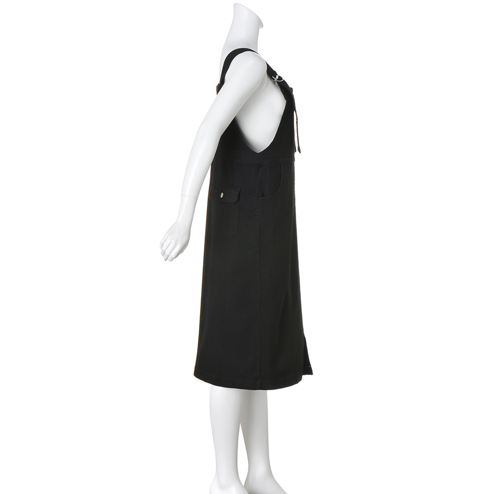 フロントのファスナー使いが印象的なジャンパースカート。ストレッチの効いたREPREVE(R)糸を使用したブラックデニムは、カジュアルはもちろんブラウスなどを合わせたきれいめスタイルにも活躍します。Iラインとフロントの裾にほどこしたスリットがすっきり見えを叶えます。サステナブルな繊維ブランド「REPREVE(R)」の糸を使ったデニムをピックアップ!アメリカの「unifi」社が、使用済みのペットボトルなどを原料として作るポリエステル糸の「REPREVE(R)」。環境に配慮したエコな素材が注目されています。地球の未来を考えながら、自分自身のおしゃれも楽しむ、新しい選択のひとつとして取り入れてみませんか? 【REPREVE(R)の糸を使ったデニム生地ができるまで】1.リサイクルされたペットボトルを回収し、薄い片状にします。 2.ペットボトルの薄い片状をREPREVE(R)チップに変えます。 3.REPREVE(R)チップを繊維状から糸状にします。 4.糸になったREPREVE(R)糸を使用し、デニム生地に仕立てます。