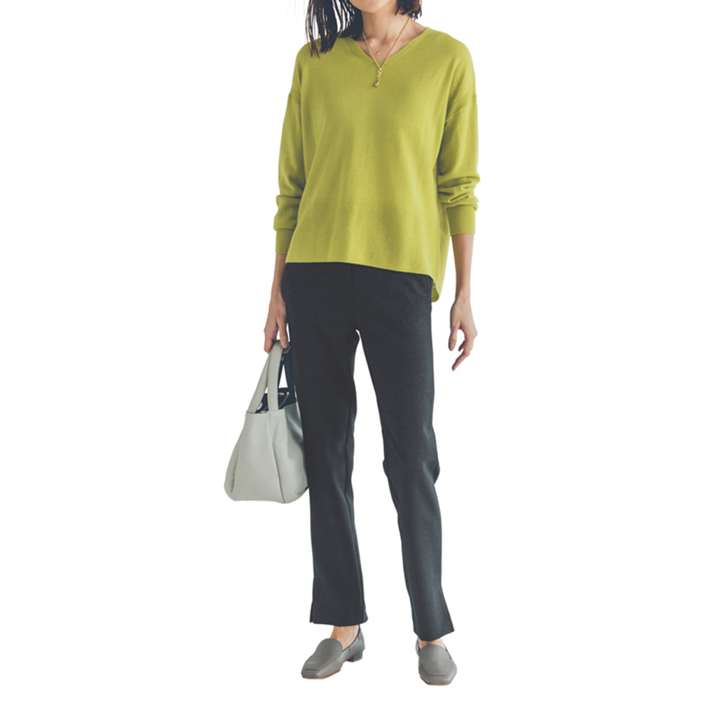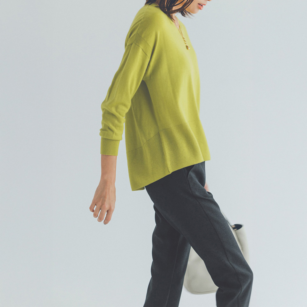 • (ア)ピスタチオ 後ろの着丈が長く、中心から脇にかけてラウンドさせることで、気になる腰まわりをさりげなくカバーします。